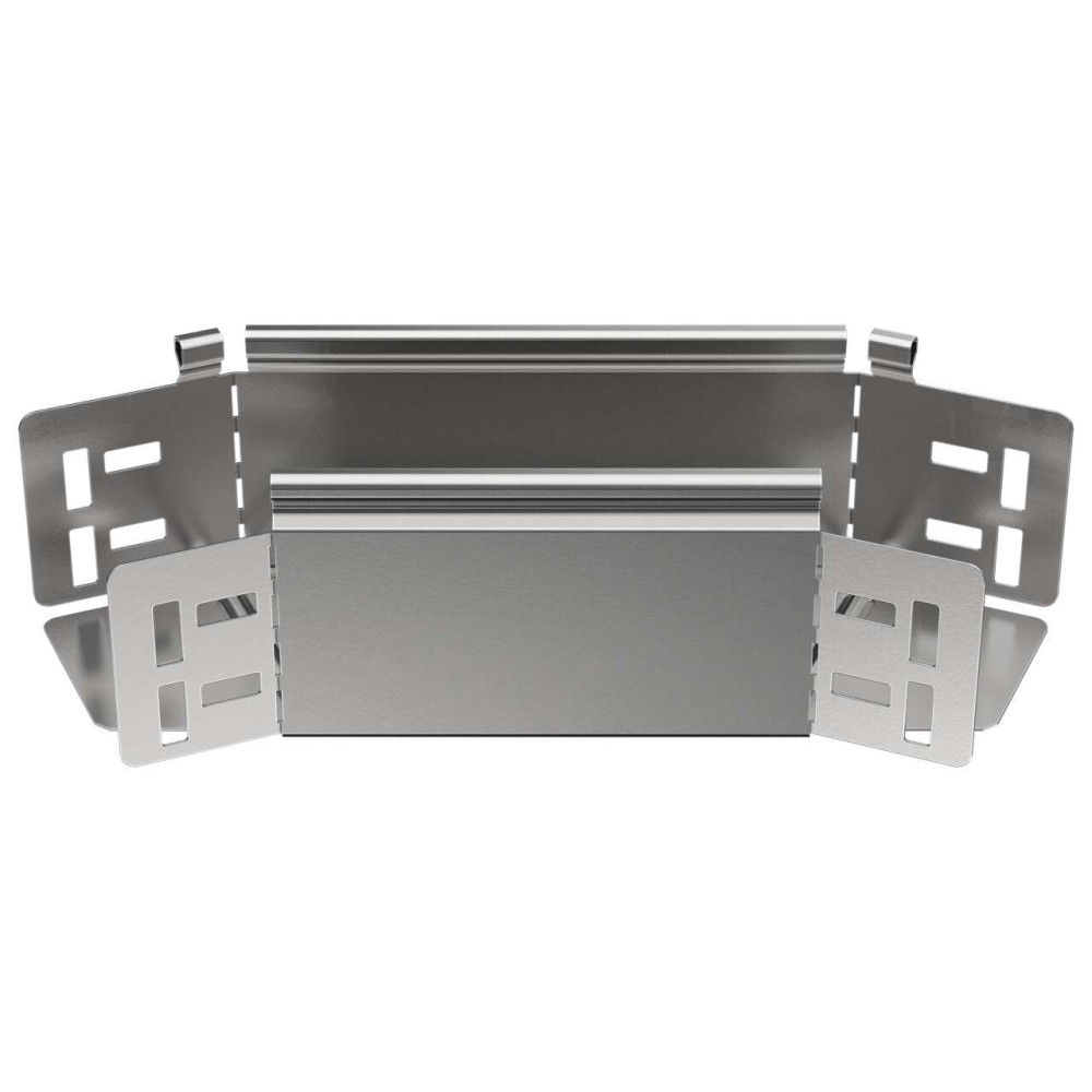 Поворот горизонтальный на 45° предназначен для организации поворота кабельной трассы в горизонтальной плоскости. Стыковка аксессуара с лотком осуществляется за счёт телескопического соединителя. Подходит для всех типов листовых лотков серии ESCA. Крышка на аксессуар заказывается отдельно. Аксессуар изготовлен из стали оцинкованной методом Сендзимира (защитный слой цинка не менее 5-10 мкм).