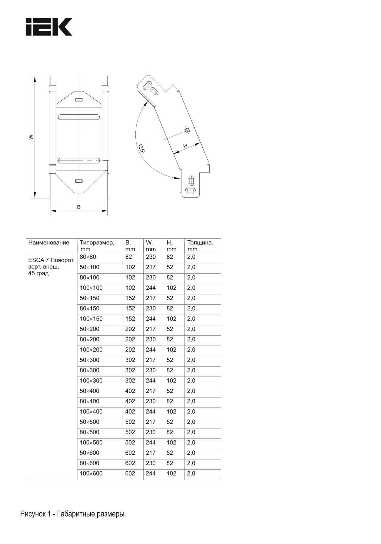 ESCA 7 Поворот вертикальный внешний 45град 80х500-2,0 HDZ IEK