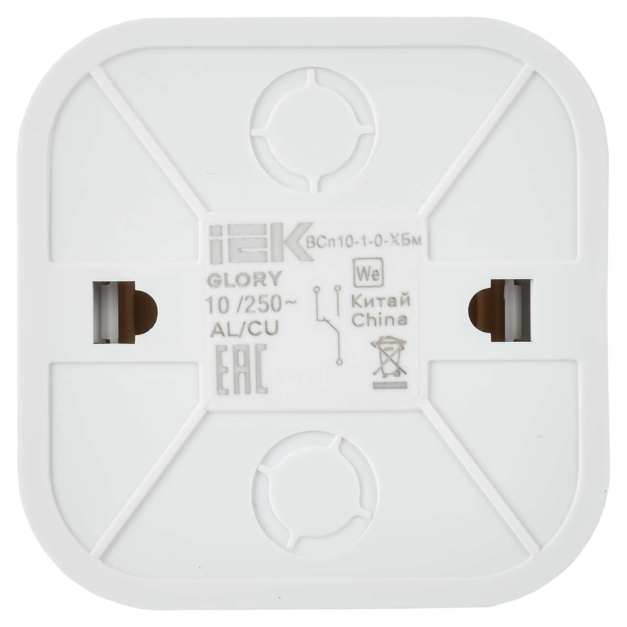 ОформитьGLORY Выключатель 1-клавишный для открытой установки проходной 10А ВСп10-1-0-ХБм белый матовый IEK
