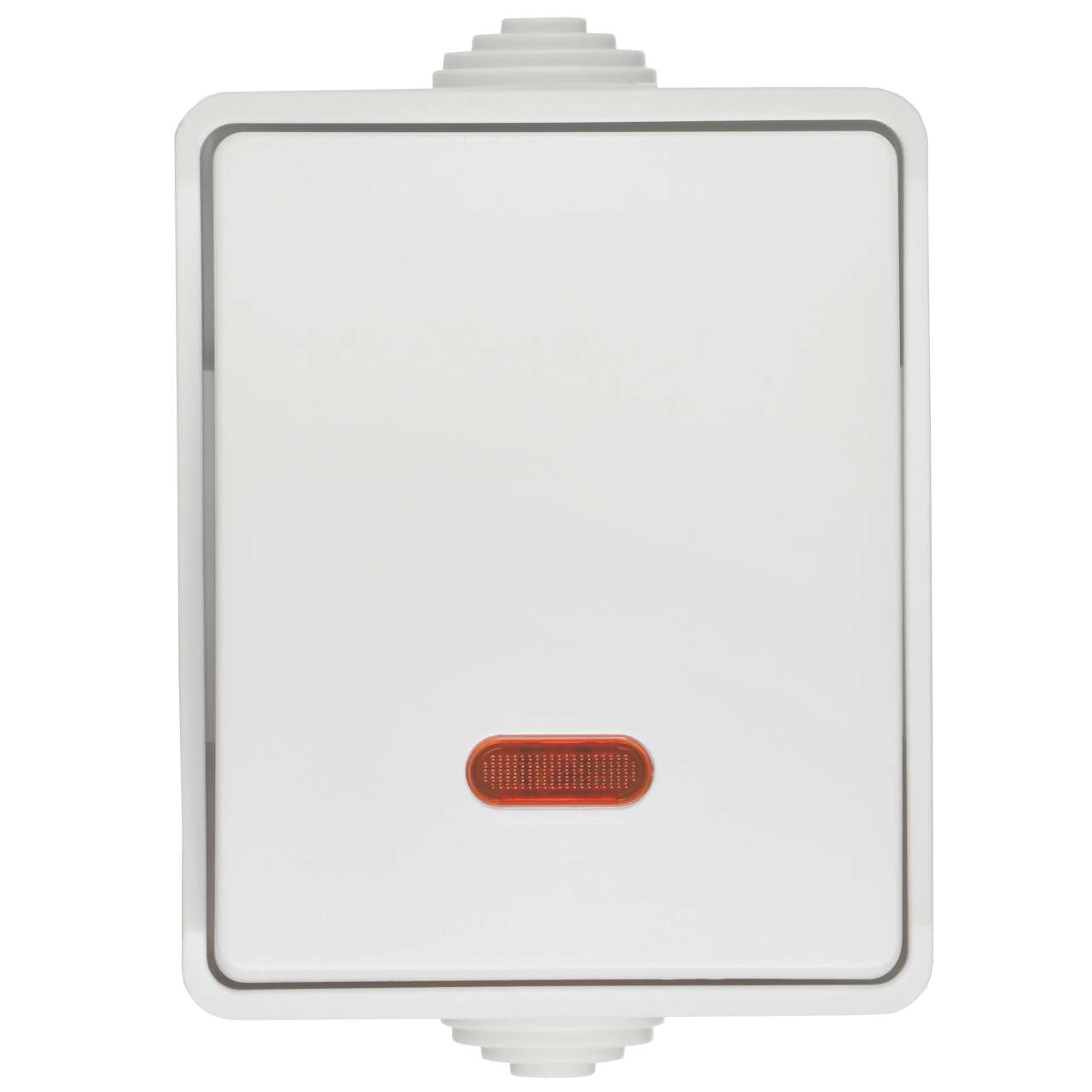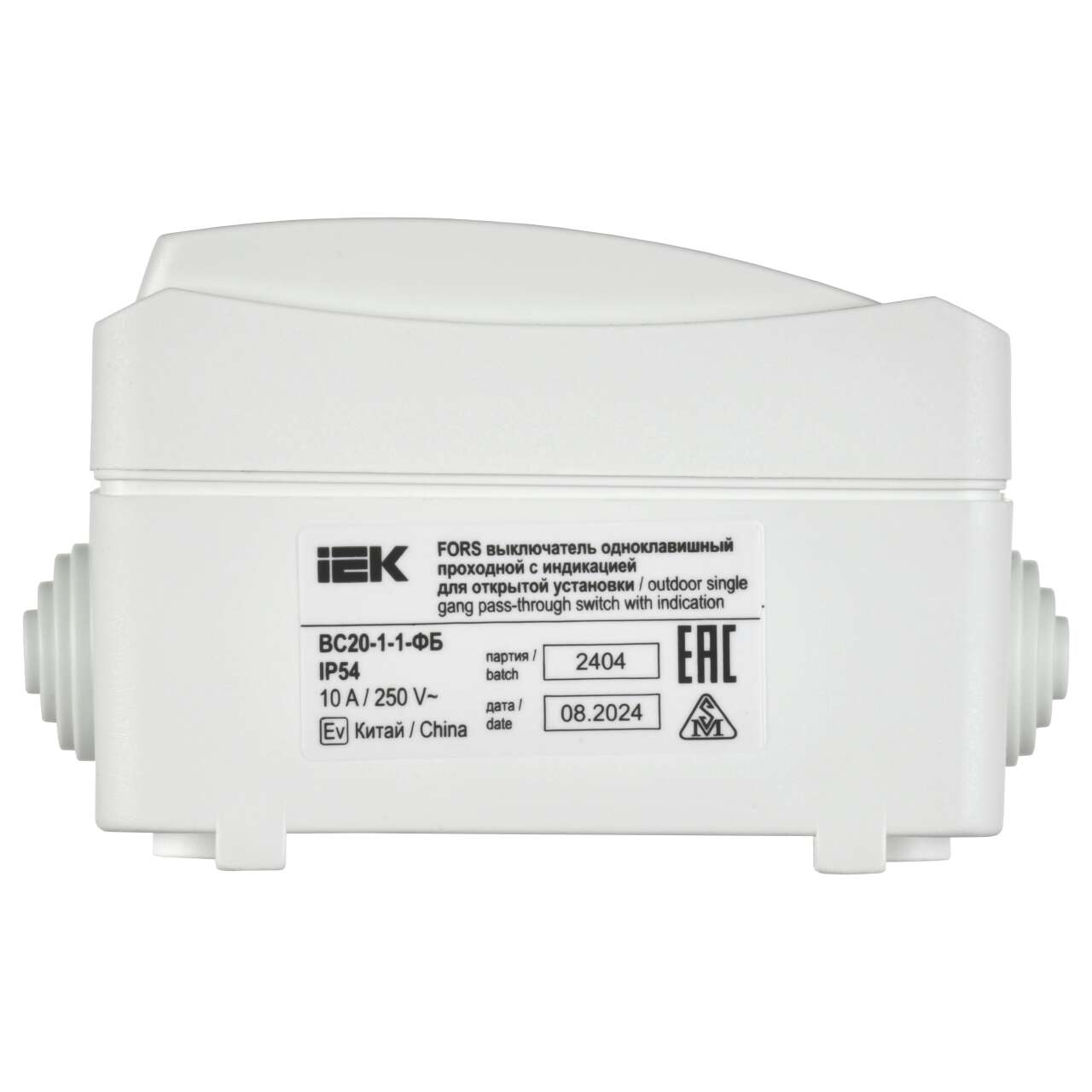 ОформитьFORS Выключатель 1-клавишный проходной с индикацией для открытой установки 10А IP54 ВС20-1-1-ФБ белый IEK