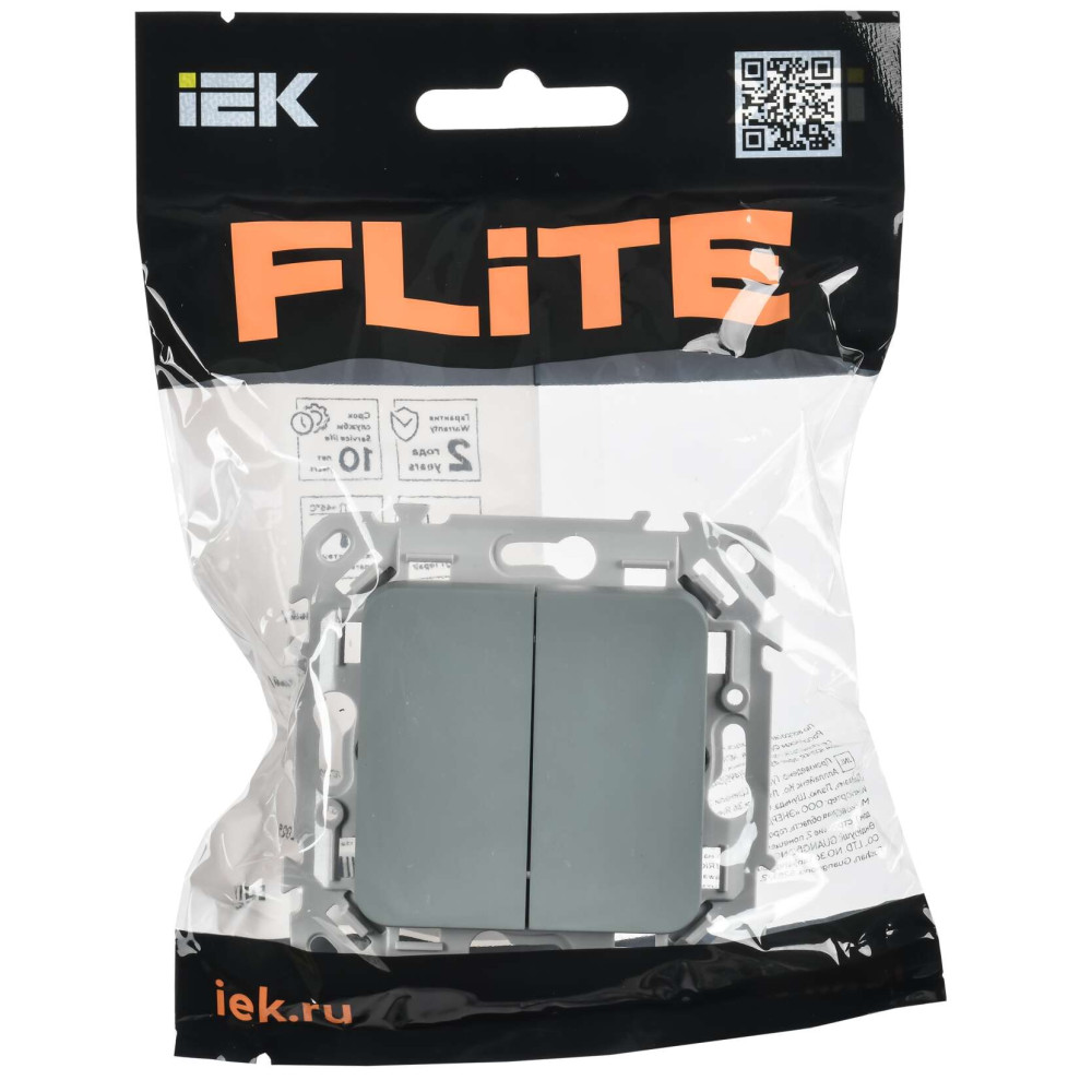 ОформитьFLITE Выключатель 2-клавишный 10А ВС12-1-0-ФлС серый IEK