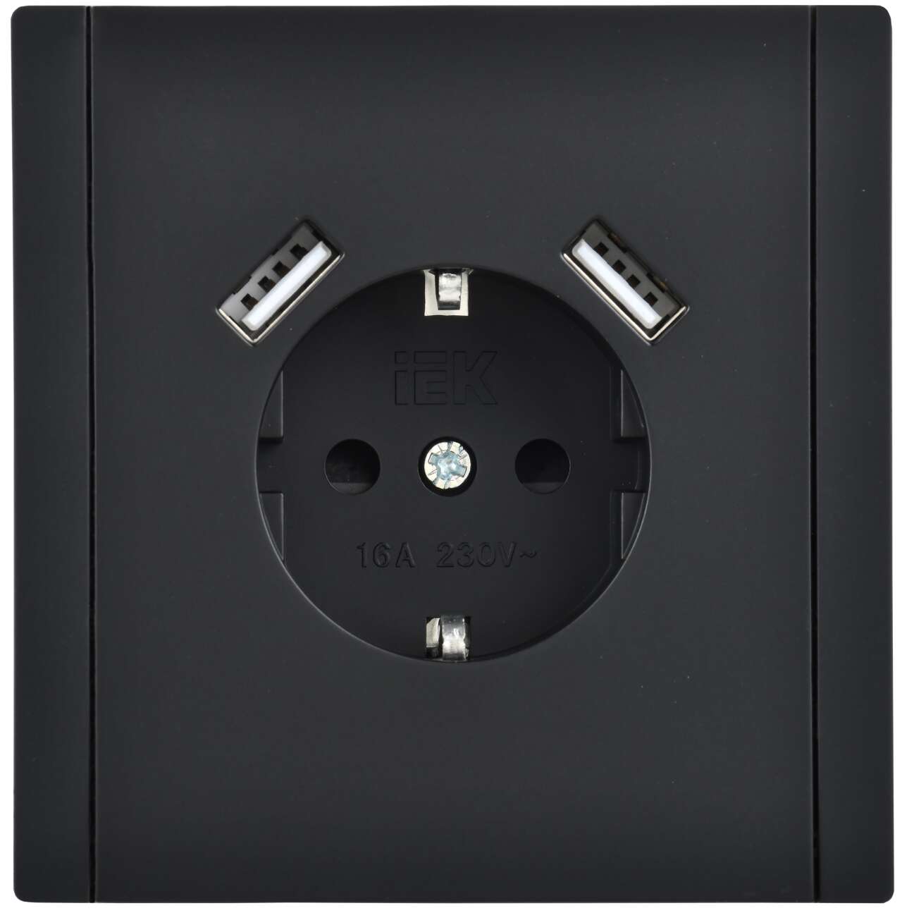 ОформитьFORTE&PIANO Розетка 1-местная с заземлением с защитными шторками винтовое крепление 16А USB A+A 3,1А FP145 черный IEK
