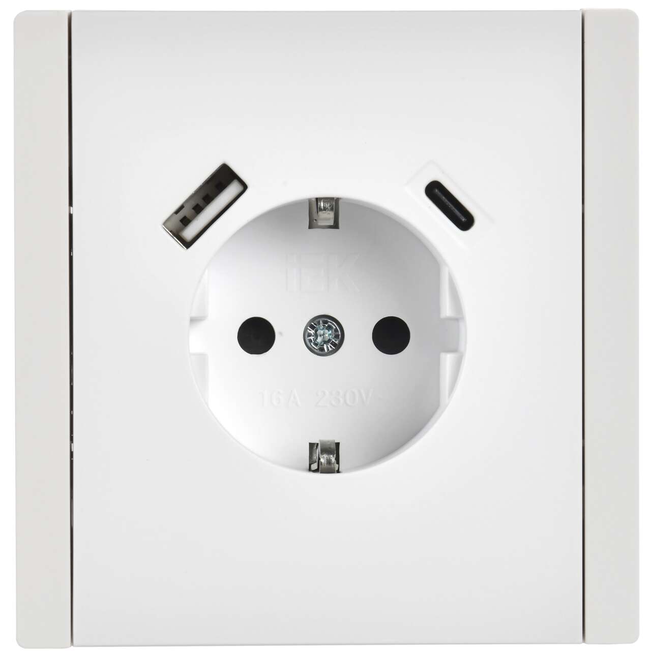 ОформитьFORTE&PIANO Розетка 1-местная с заземлением с защитными шторками винтовое крепление 16А USB A+C 18Вт FP247 белый IEK