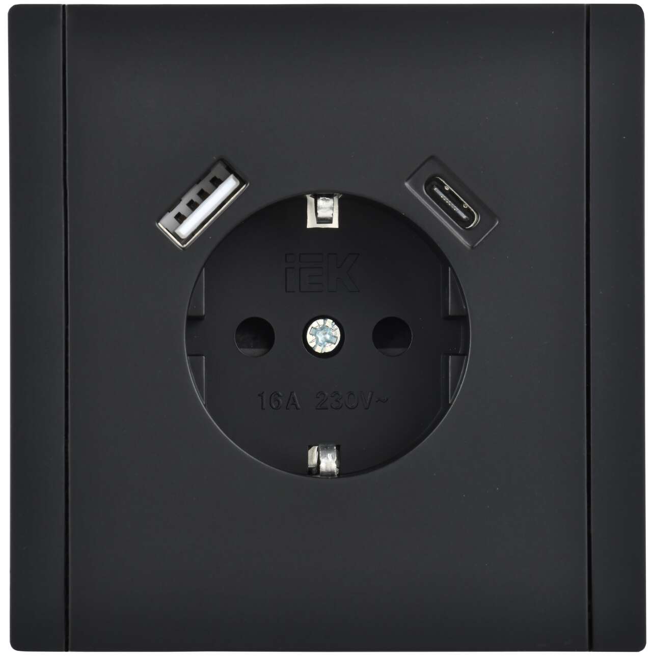 ОформитьFORTE&PIANO Розетка 1-местная с заземлением с защитными шторками винтовое крепление 16А USB A+C 18Вт FP147 черный IEK