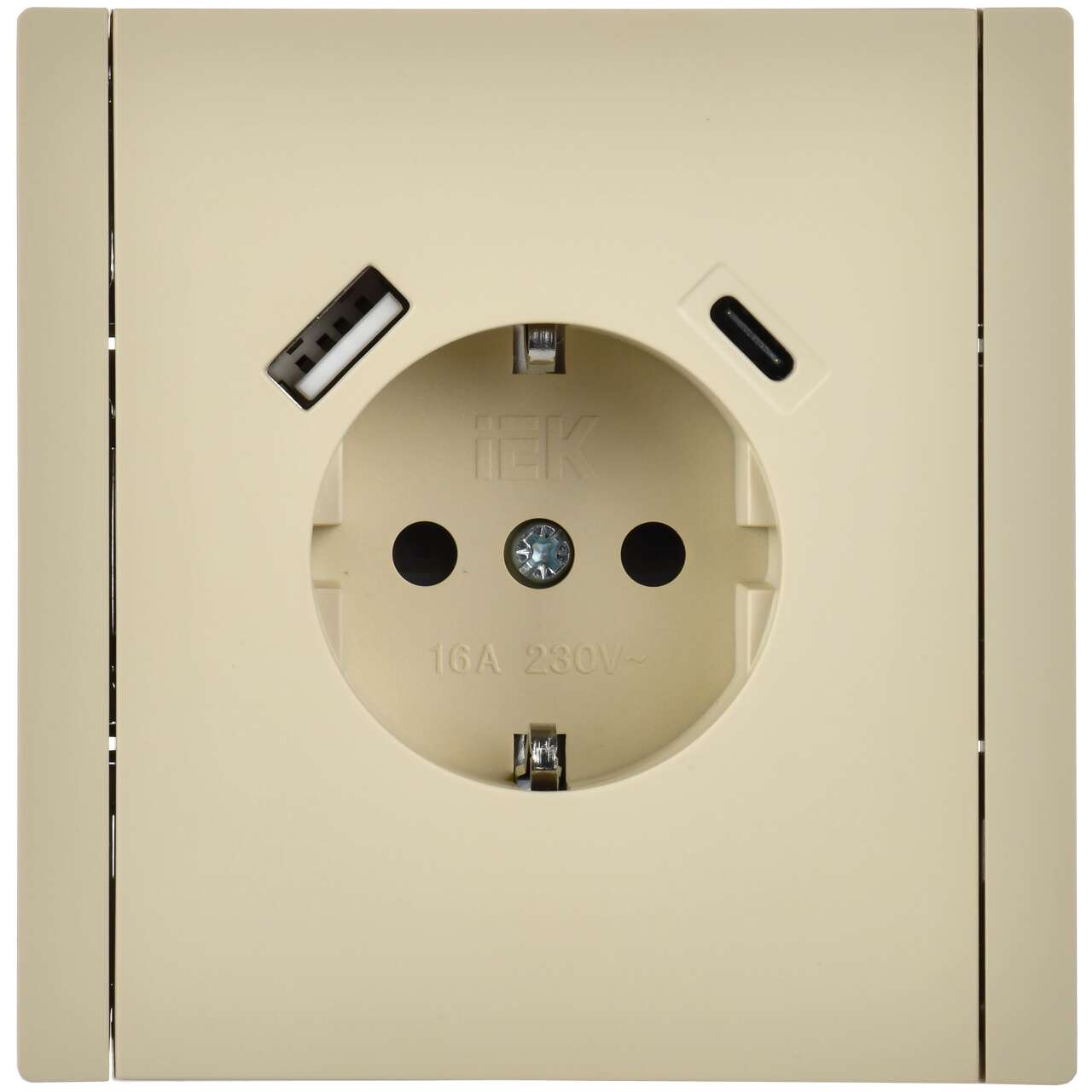 ОформитьFORTE&PIANO Розетка 1-местная с заземлением с защитными шторками винтовое крепление 16А USB A+C 18Вт FP447 ваниль IEK