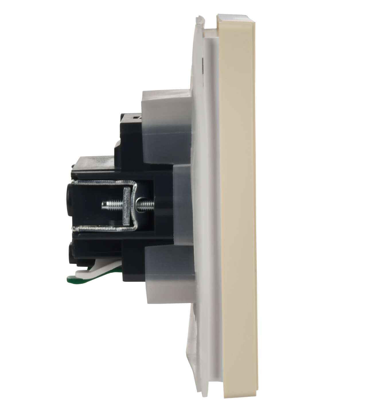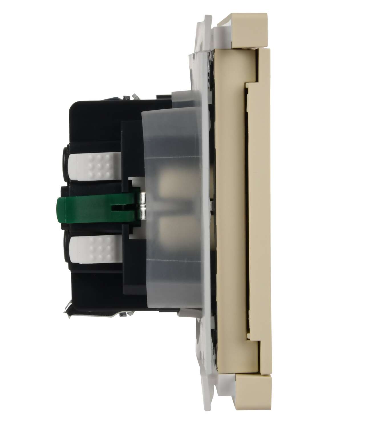 ОформитьFORTE&PIANO Розетка 1-местная с заземлением с защитными шторками и крышкой безвинтовое крепление 16А IP44 FP419 ваниль IEK