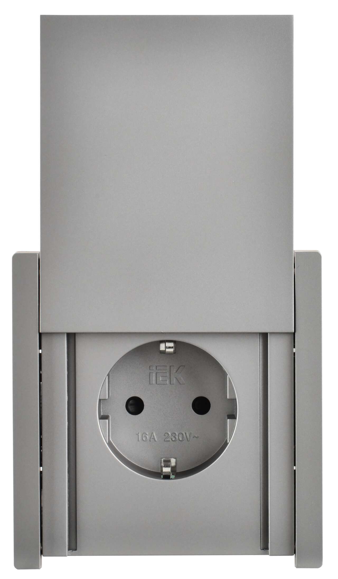 ОформитьFORTE&PIANO Розетка 1-местная с заземлением с защитными шторками и крышкой безвинтовое крепление 16А IP44 FP519 сталь IEK