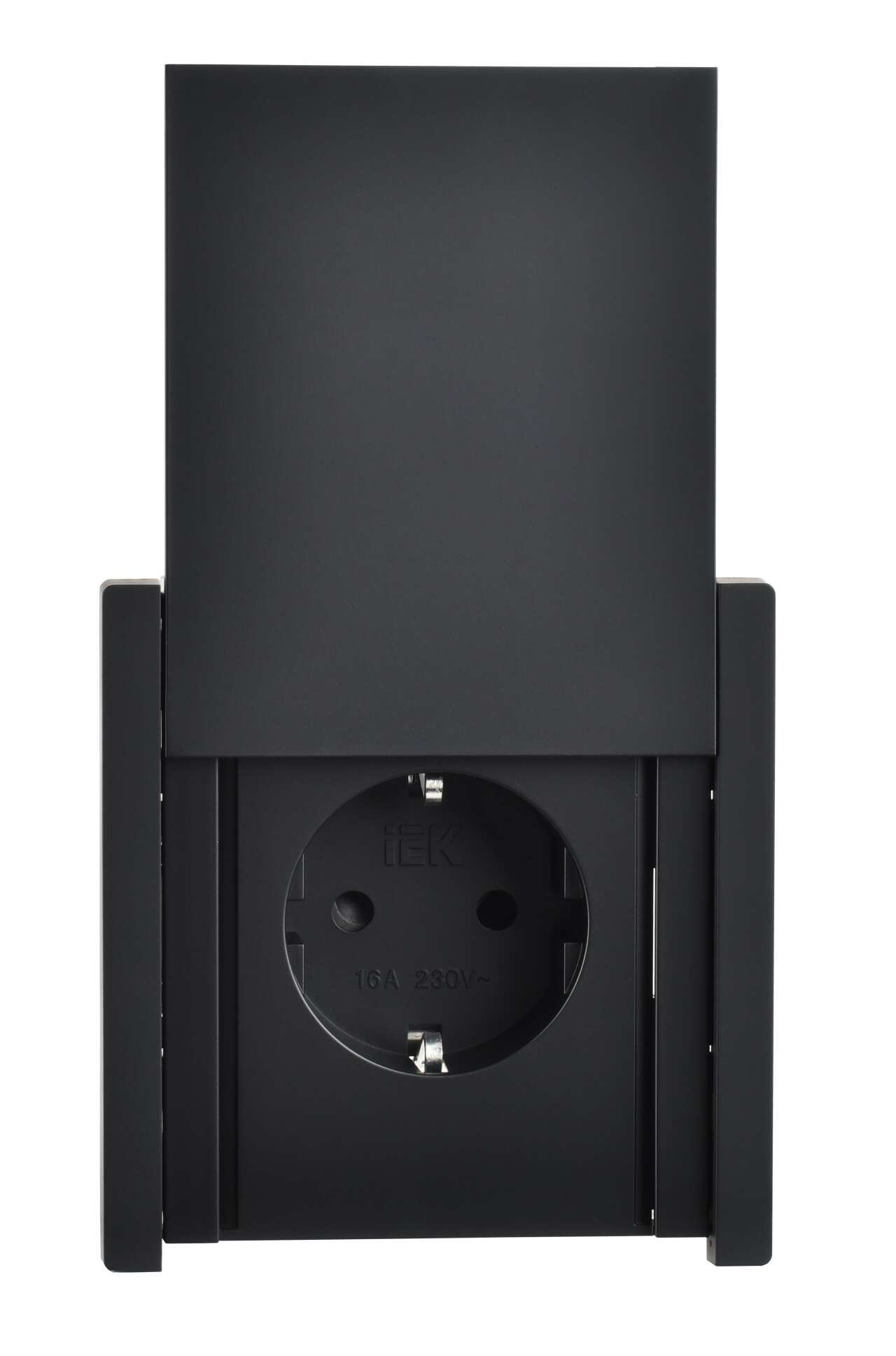 ОформитьFORTE&PIANO Розетка 1-местная с заземлением с защитными шторками и крышкой винтовое крепление 16А IP44 FP121 черный IEK