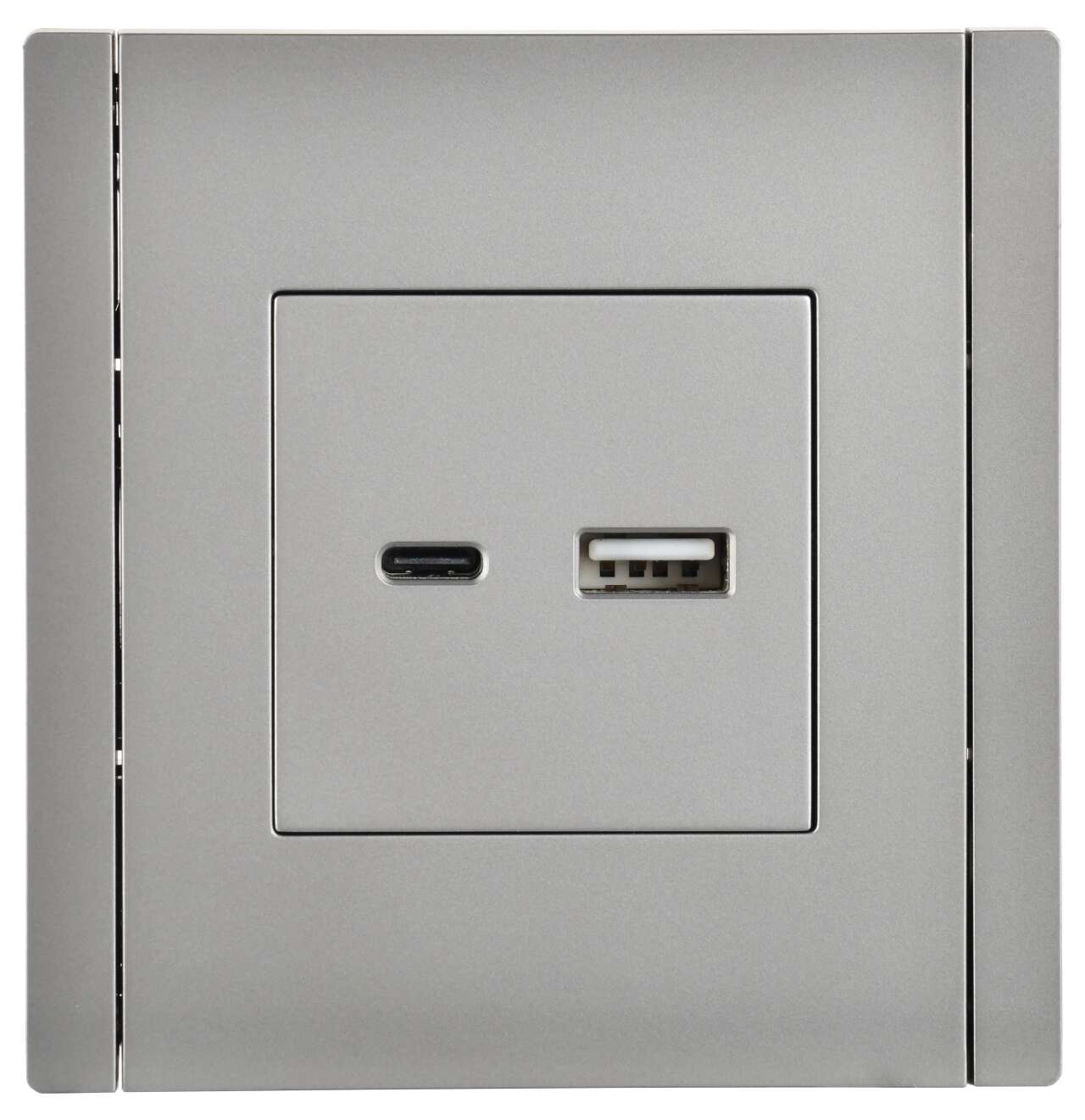 ОформитьFORTE&PIANO Розетка USB A+C 18Вт FP551 сталь IEK