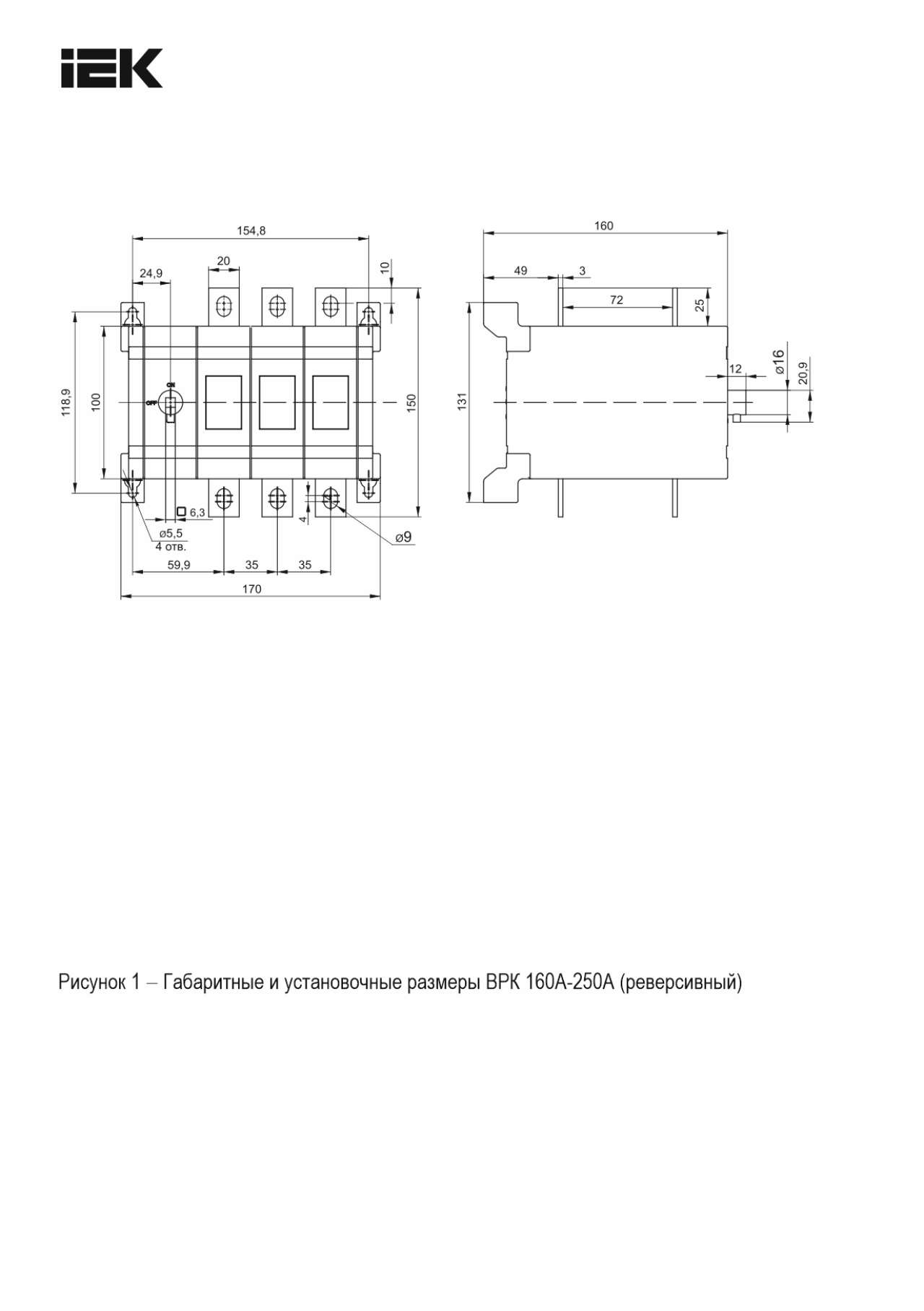 ОформитьKARAT Выключатель-разъединитель ВРК реверсивный без рукоятки управления 3P 160А IEK