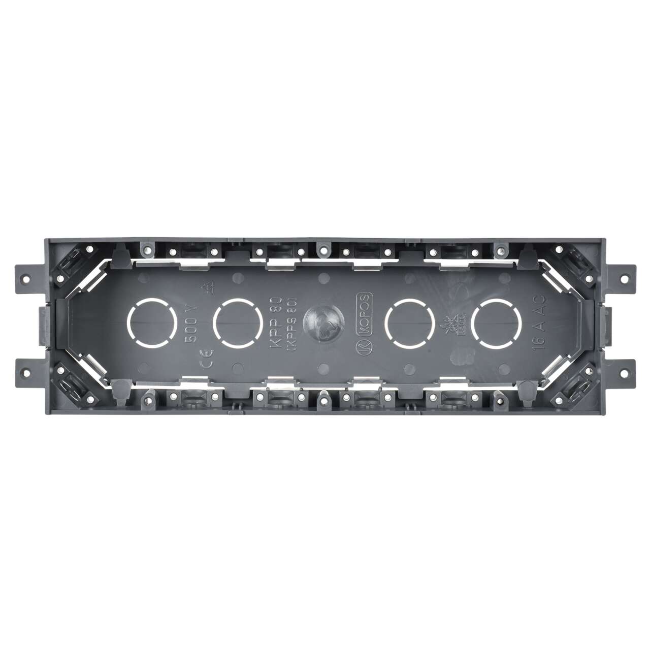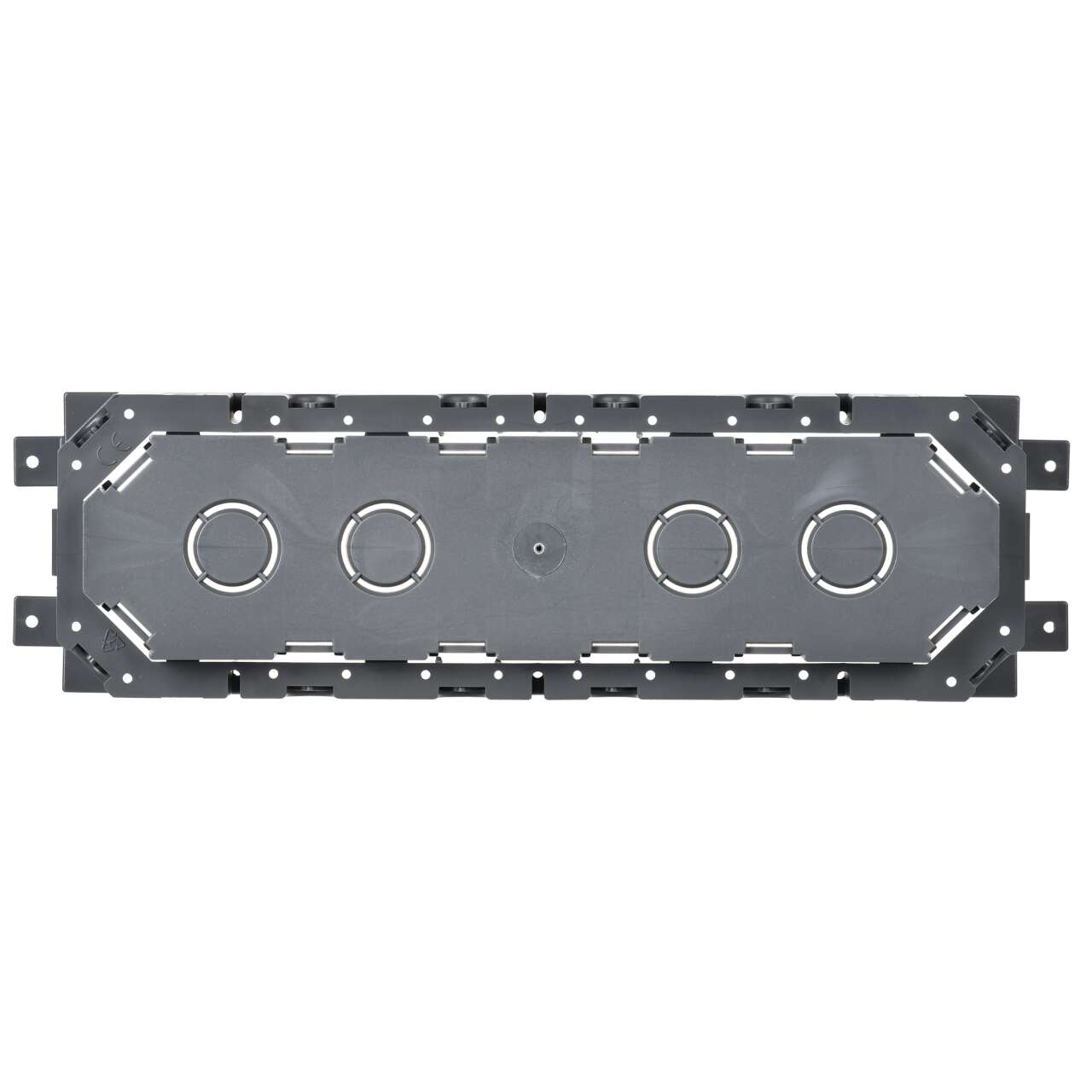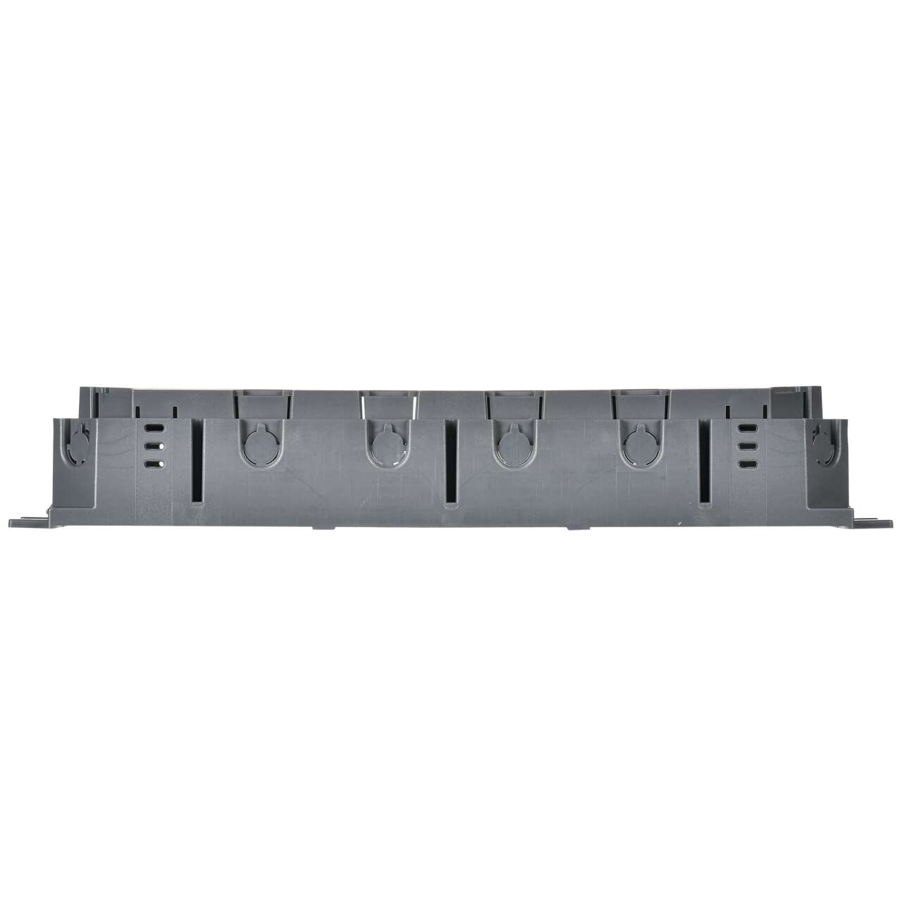Коробка приборная ONFLOOR 24. Предназначена для установки в лючок напольный ONFLOOR 24 (максимум 2 шт.). Для установки модульных ЭУИ 45х45 рекомендуется использовать совместно с рамкой приборной на 8 модулей: KNR-80-45-7012. Для установки ЭУИ с расстоянием между крепежными винтами 60 мм рекомендуется использовать совместно с рамкой приборной на 3 места для классических ЭУИ: KNR-80-03-7012. В комплекте с коробкой поставляется крепеж для фиксации. Глубину коробки можно увеличить нажатием на дно. Материал: полиамид. Цвет: тeмно-серый RAL 7012.