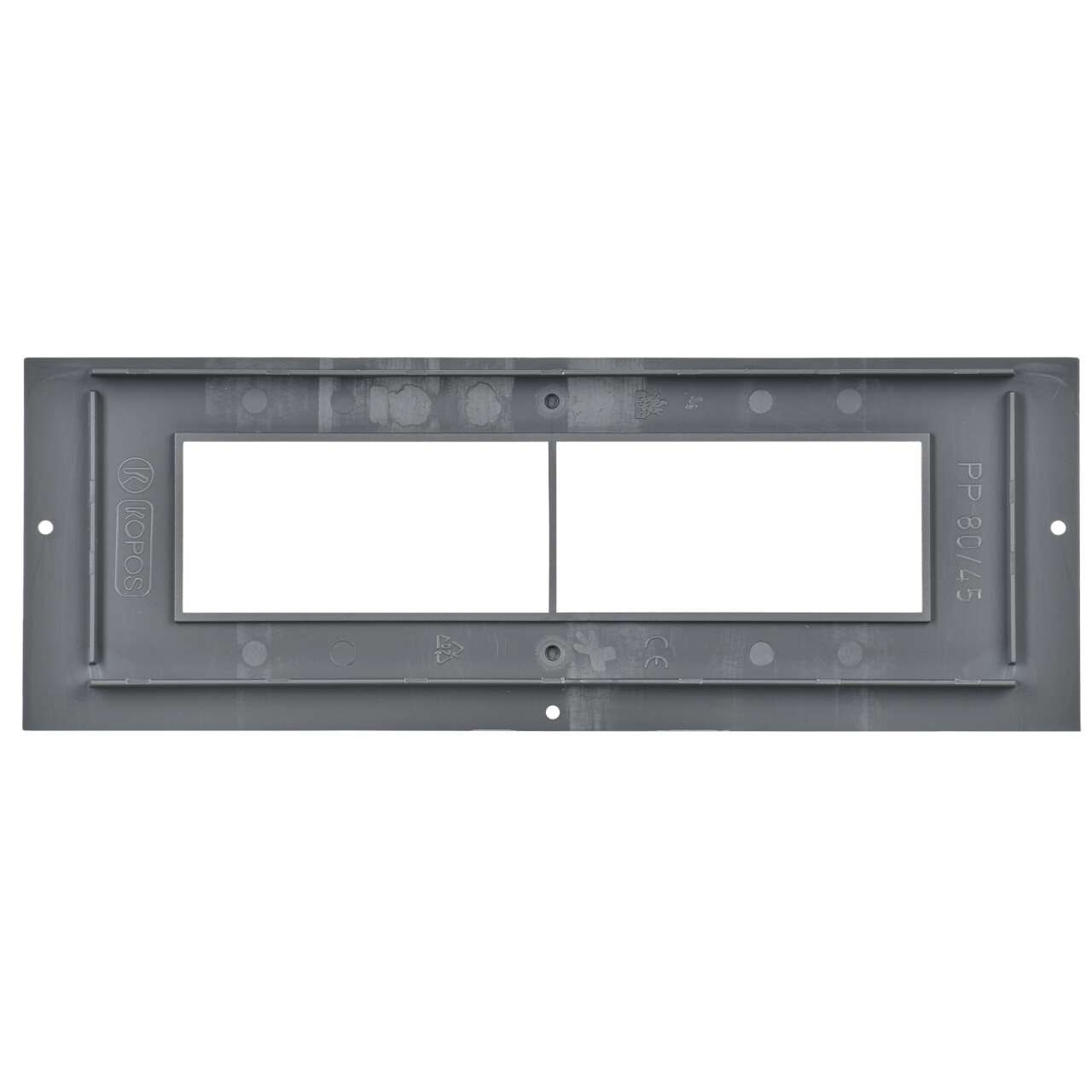 Рамка приборная на 8 модулей ONFLOOR 24. Предназначена для установки в лючок напольный ONFLOOR 24 (максимум 2 шт.) 8 модулей (4 поста 45х45 мм / 8 модулей 45х22,5) электроустановочных изделий. Рекомендуется использовать совместно с коробкой приборной ONFLOOR 24: KNP-80-16-PA-7012. Материал: полиамид. Цвет: тeмно-серый RAL 7012.