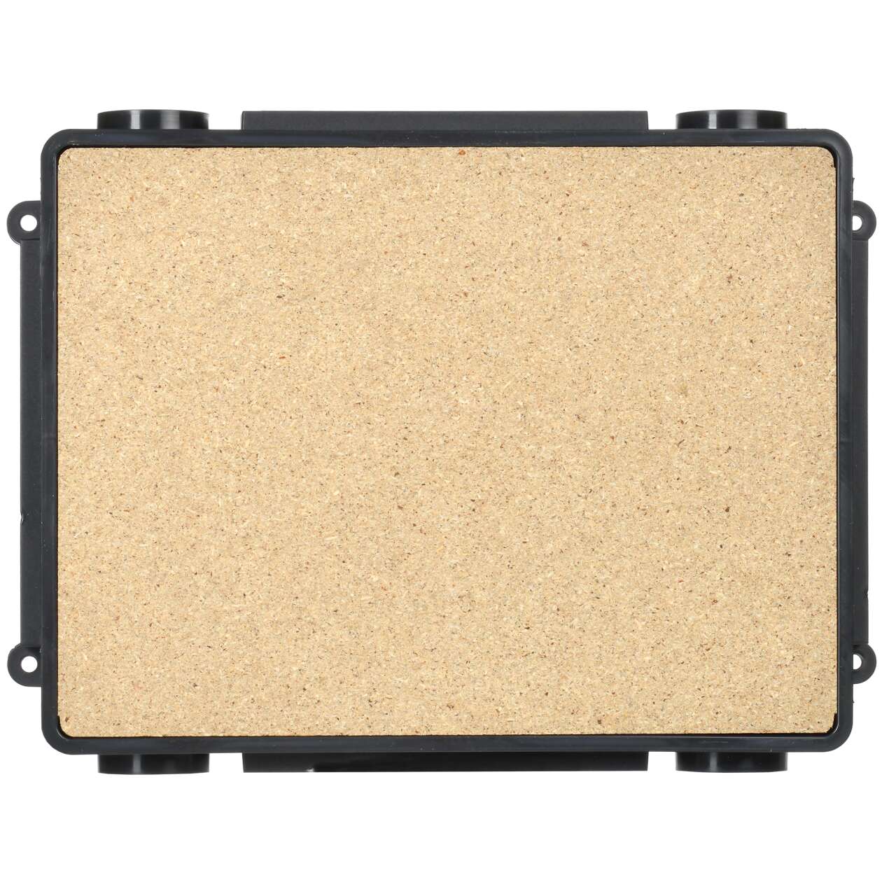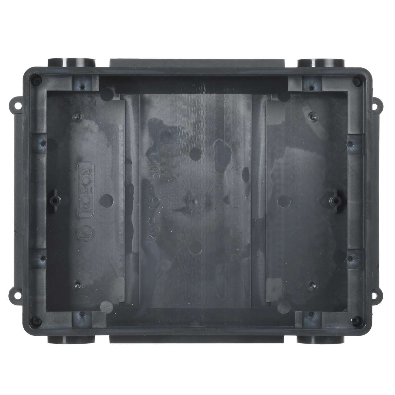 Коробка напольная ONFLOOR 12. Предназначена для установки лючка ONFLOOR 12: KNL-57-12-7012 в бетонный пол толщиной 57-75 мм. Перед заливкой коробку необходимо зафиксировать на монтажной поверхности, предварительно просверлив основание коробки. Требуемую высоту коробки можно выставить с помощью винтов, которые регулируют высоту внутреннего вкладыша коробки (винты находятся на каждой из вершин коробки) в диапазоне от 57 мм до 75 мм. В случае если слой бетона будет выше чем 75 мм необходимо использовать нивелирующий комплект: KNK-SN-9011 (приобретается отдельно). В коробке предусмотрены вводы для электромонтажных труб (D 25/32/40 мм) или металлического лотка 35х100 мм. Для исключения попадания раствора внутрь коробки во время заливки бетона в комплекте поставляется защитная крышка. После застывания смеси защитную крышку удалить. Комплект поставки: Коробка напольная ONFLOOR 12 - 1 шт., защитная крышка - 1 шт., комплект крепежа - 1 компл. Материал: полиамид. Цвет: черный.