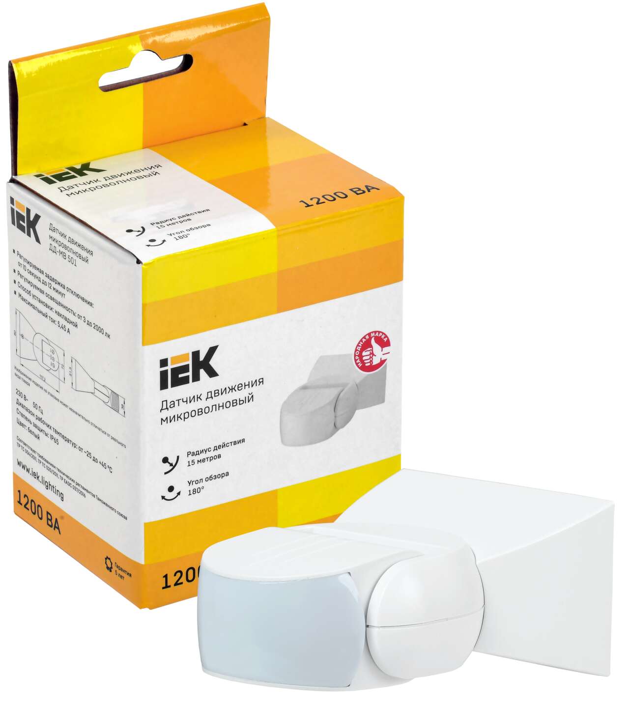 ОформитьДатчик движения ДД-МВ501 1200Вт 180град 15м IP65 белый IEK