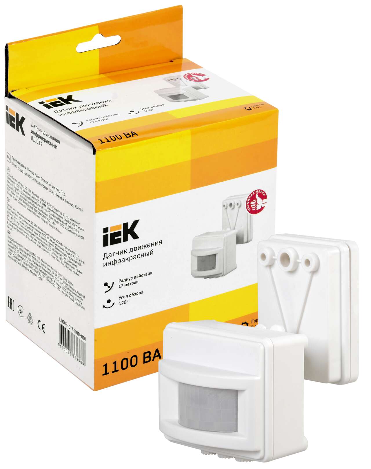 ОформитьДатчик движения ДД-017 1100Вт 120град 12м IP44 белый IEK