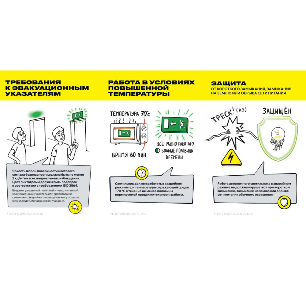 - Светильники загораются в течение 5 секунд, после падения напряжения рабочего питания.