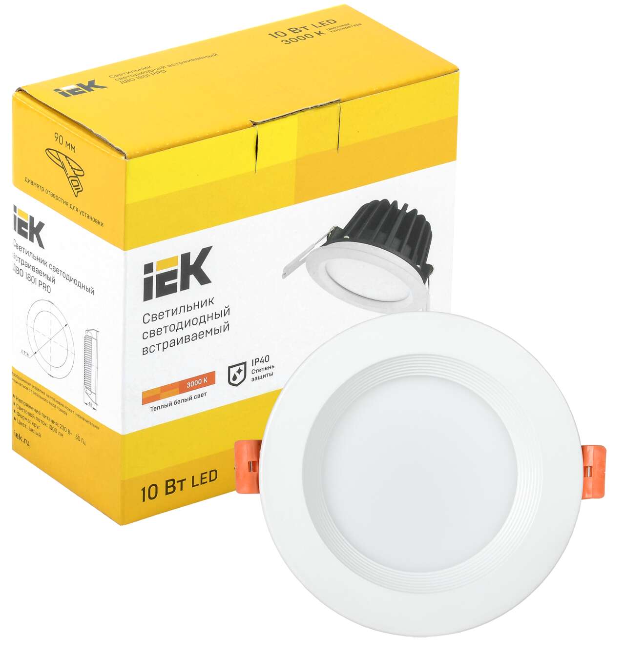 ОформитьСветильник светодиодный ДВО 1801 PRO круг 10Вт 3000K IP40 белый IEK