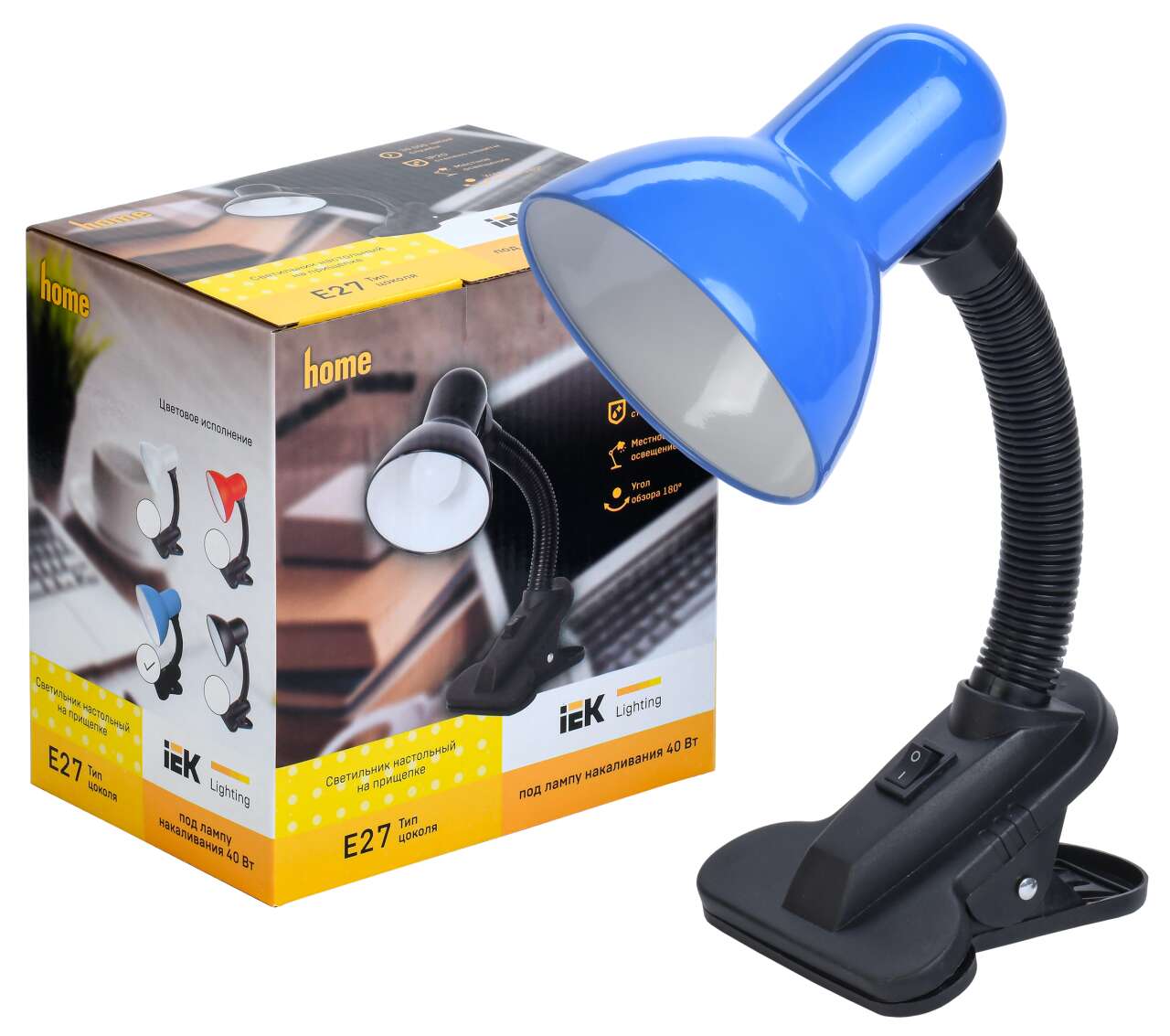 ОформитьСветильник настольный 1001 на прищепке Е27 синий IEK