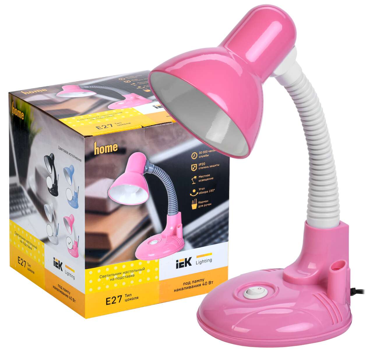 ОформитьСветильник настольный 1005 с кармашком Е27 розовый IEK
