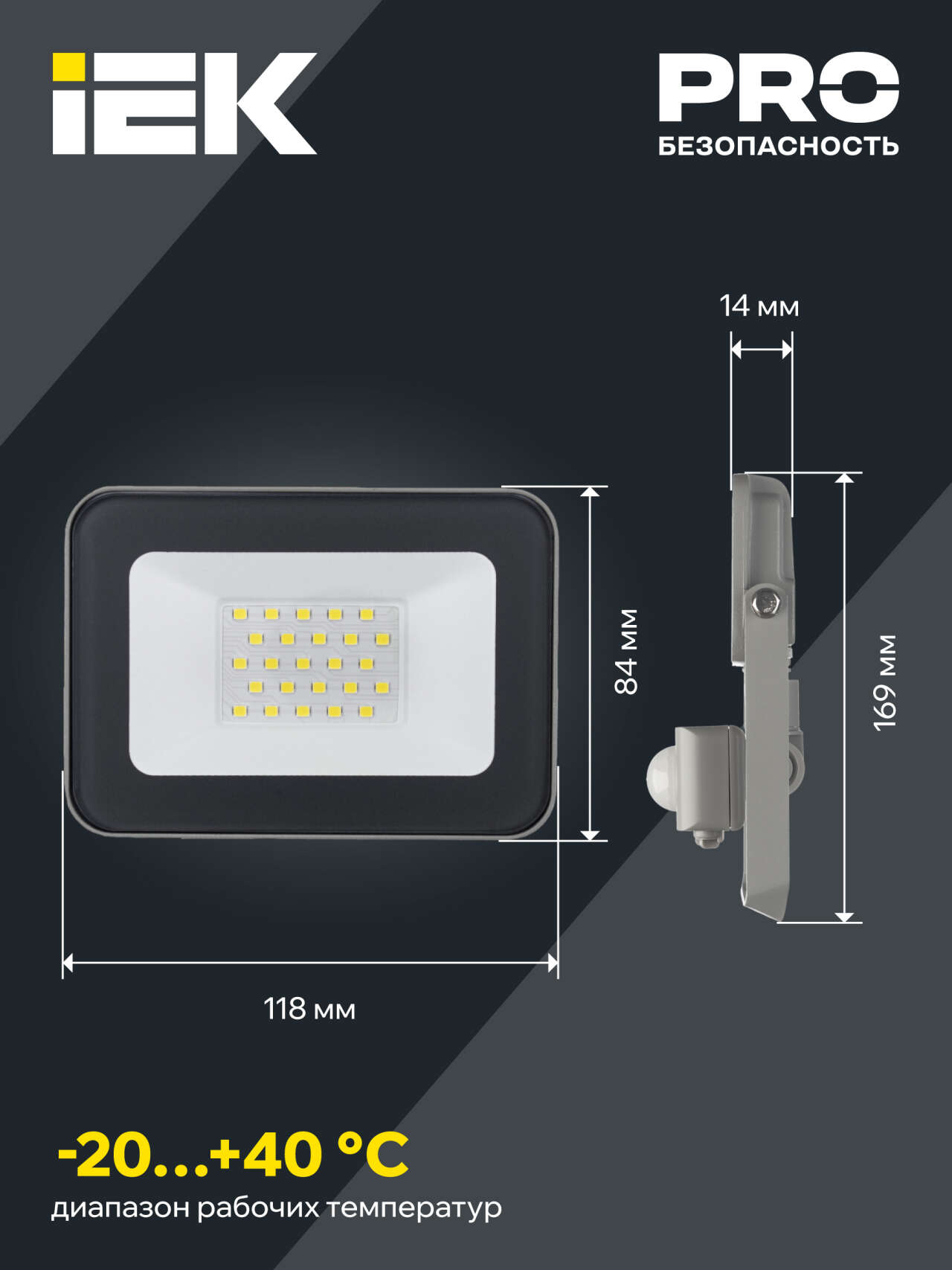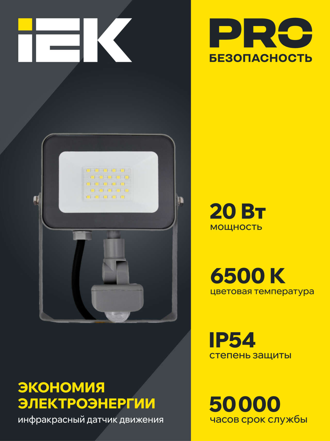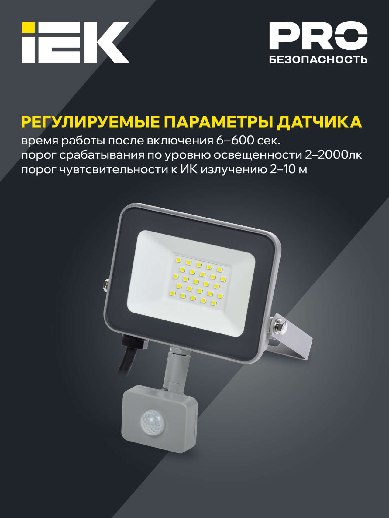 ОформитьПрожектор светодиодный СДО 07-20Д с датчиком движения IP54 серый IEK