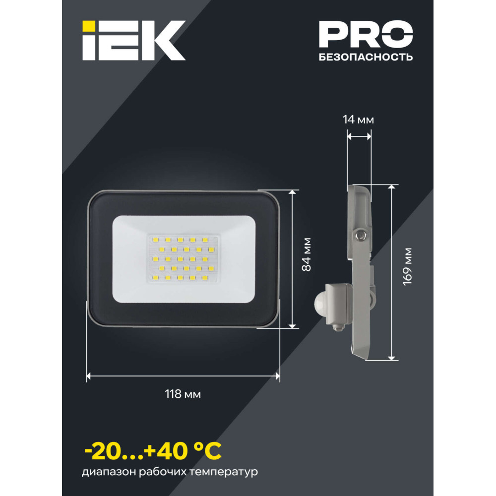 ОформитьПрожектор светодиодный СДО 07-20Д с датчиком движения IP54 серый IEK