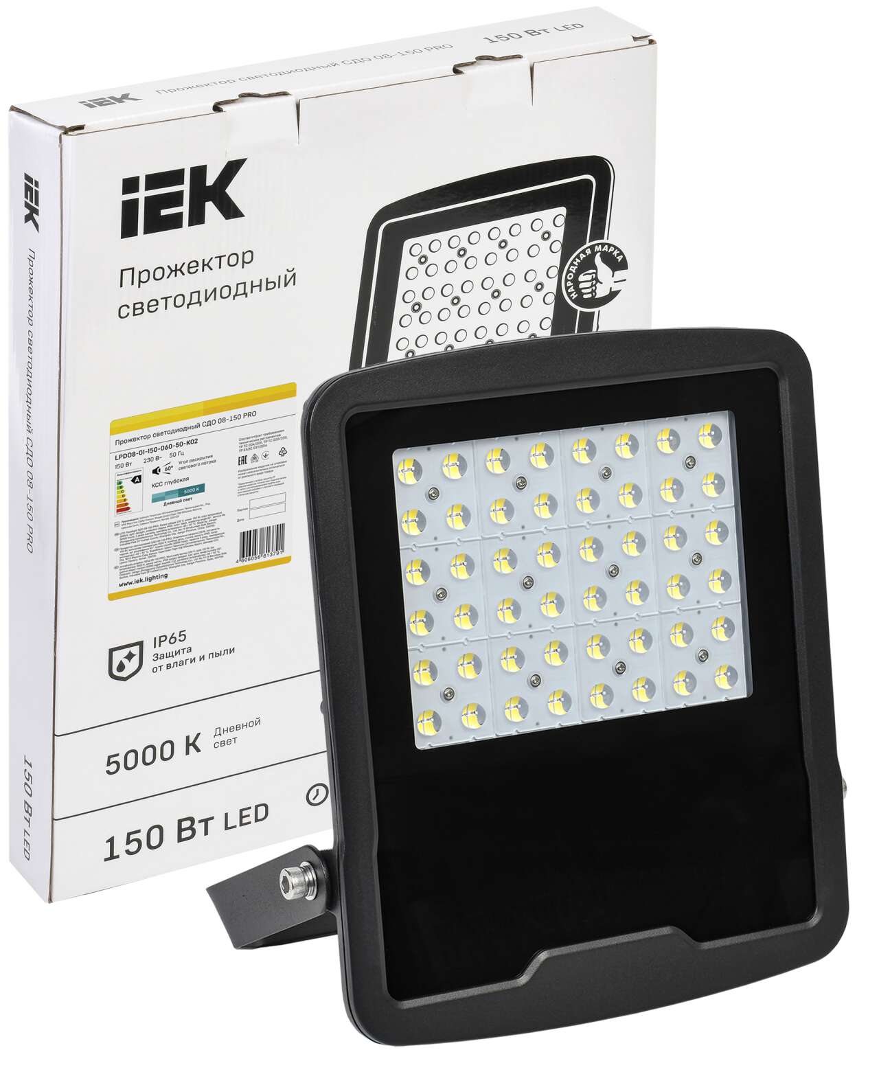 ОформитьПрожектор светодиодный СДО 08-150 PRO 60град 5000К IP65 черный IEK
