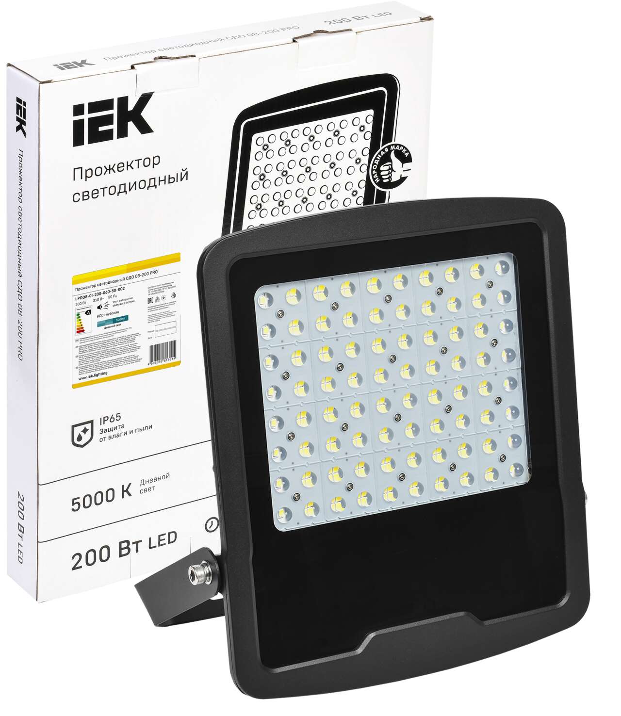 ОформитьПрожектор светодиодный СДО 08-200 PRO 40х90град 5000К IP65 черный IEK