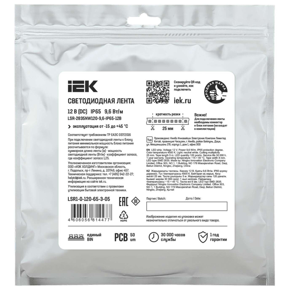 ОформитьЛента светодиодная 5м LSR-2835NW120-9,6-IP65-12В IEK