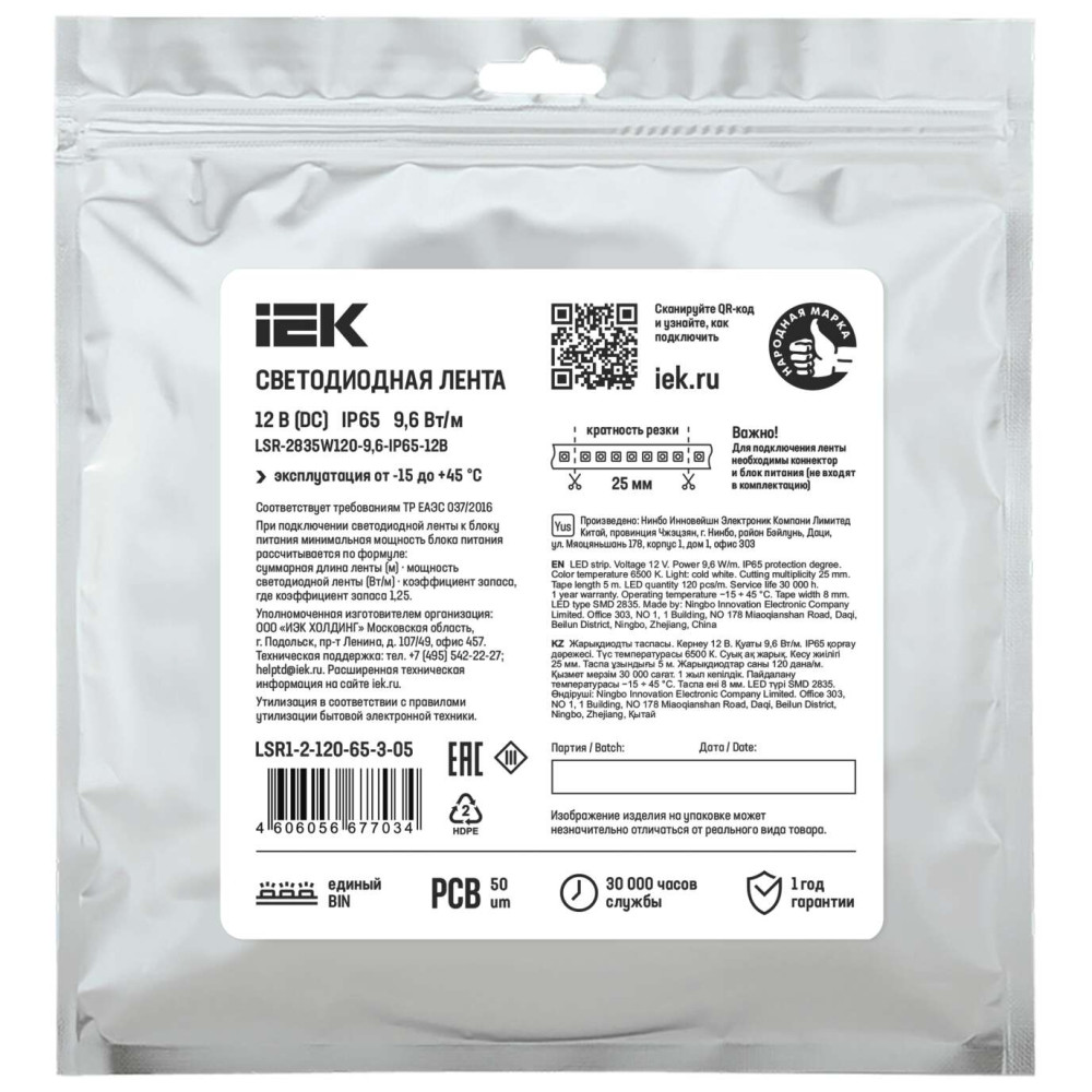 ОформитьЛента светодиодная 5м LSR-2835W120-9,6-IP65-12В IEK