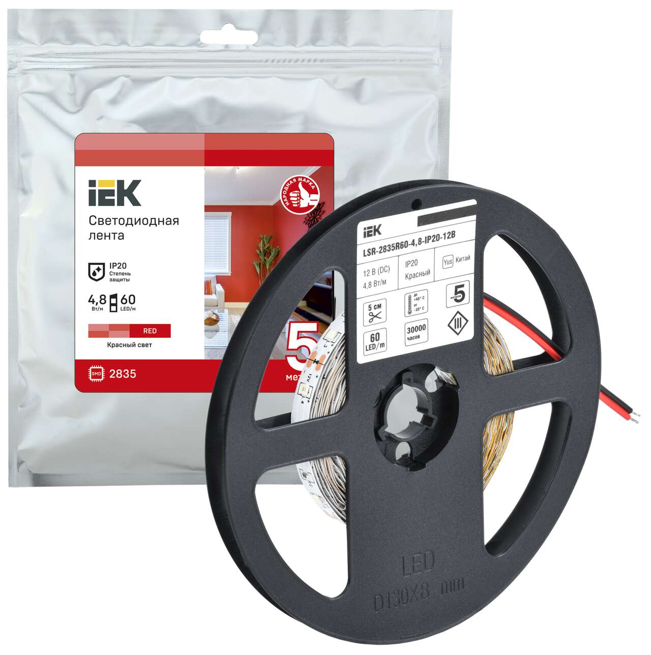 Лента светодиодная 5м LSR-2835R60-4,8-IP20-12В IEK