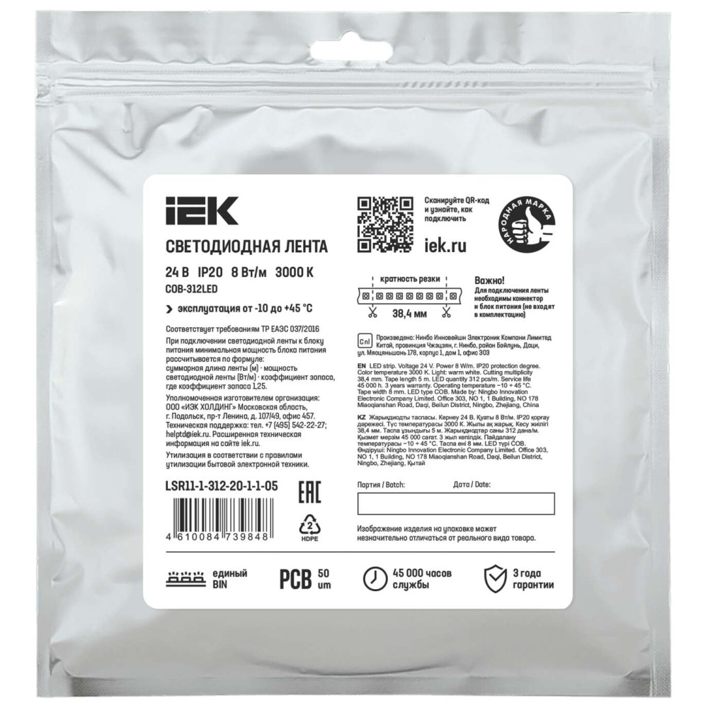 - Лента имеет единый BIN, что дает одинаковый цветовой оттенок по всей длине.