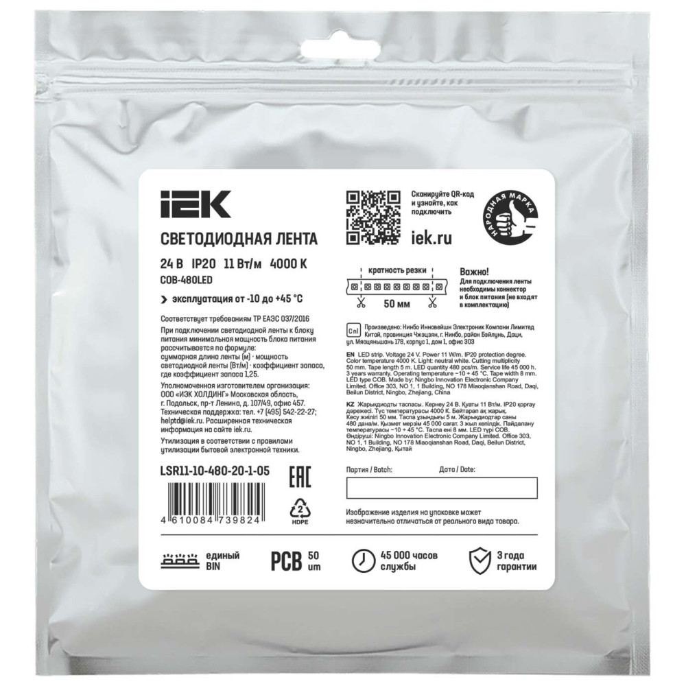 - Лента имеет единый BIN, что дает одинаковый цветовой оттенок по всей длине.