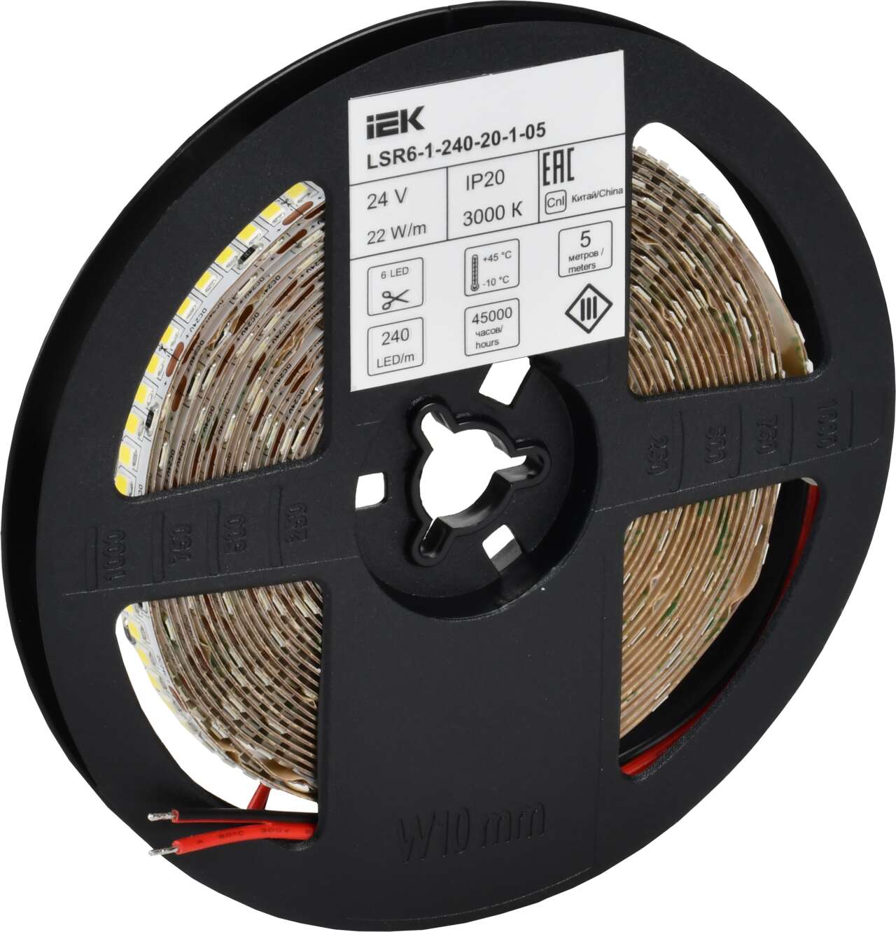 ОформитьЛента светодиодная 5м SMD2835 240LED/м 22Вт/м IP20 ширина 10мм 24В теплый белый IEK