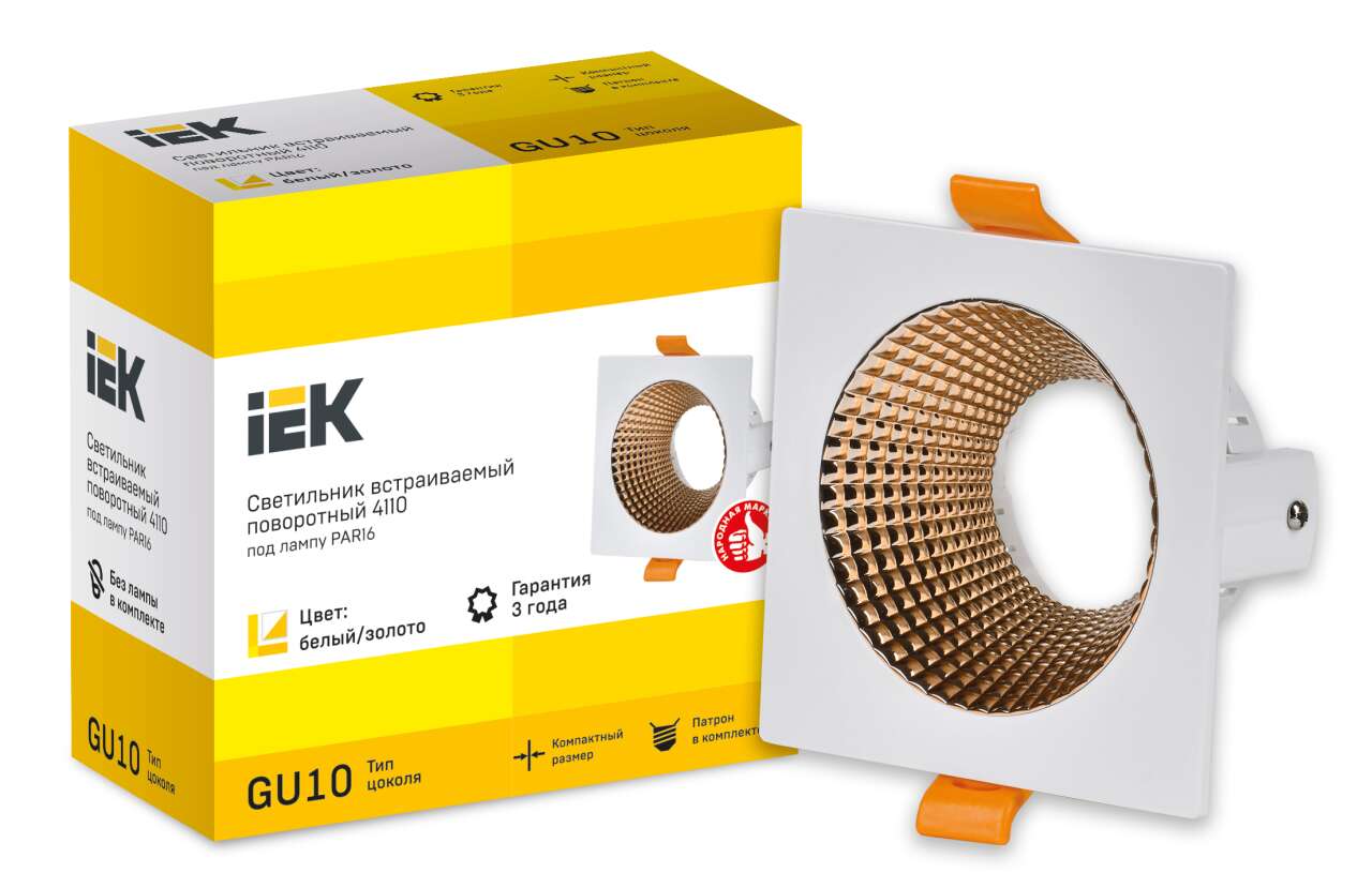 ОформитьСветильник 4110 встраиваемый поворотный под лампу GU10 белый/золото пластик IEK
