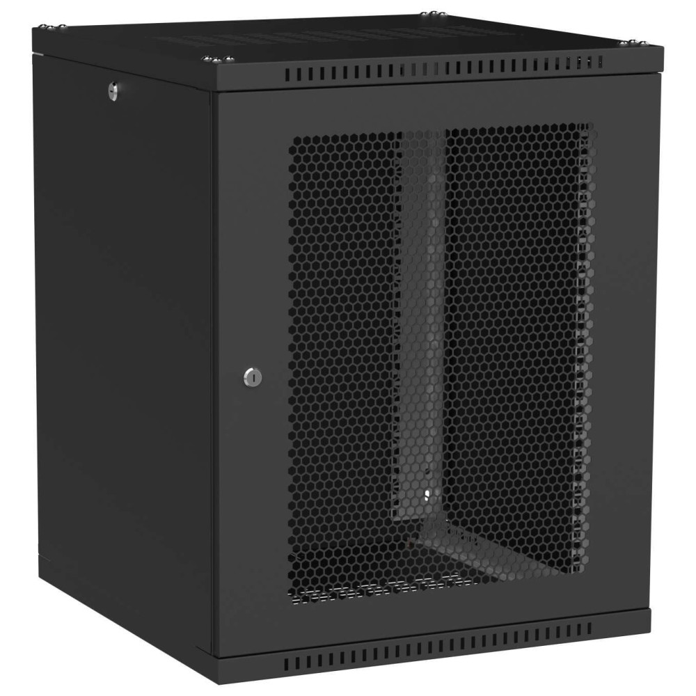 Шкаф настенный 19" 15U 600х600мм перфорированная дверь черный GENERICA
