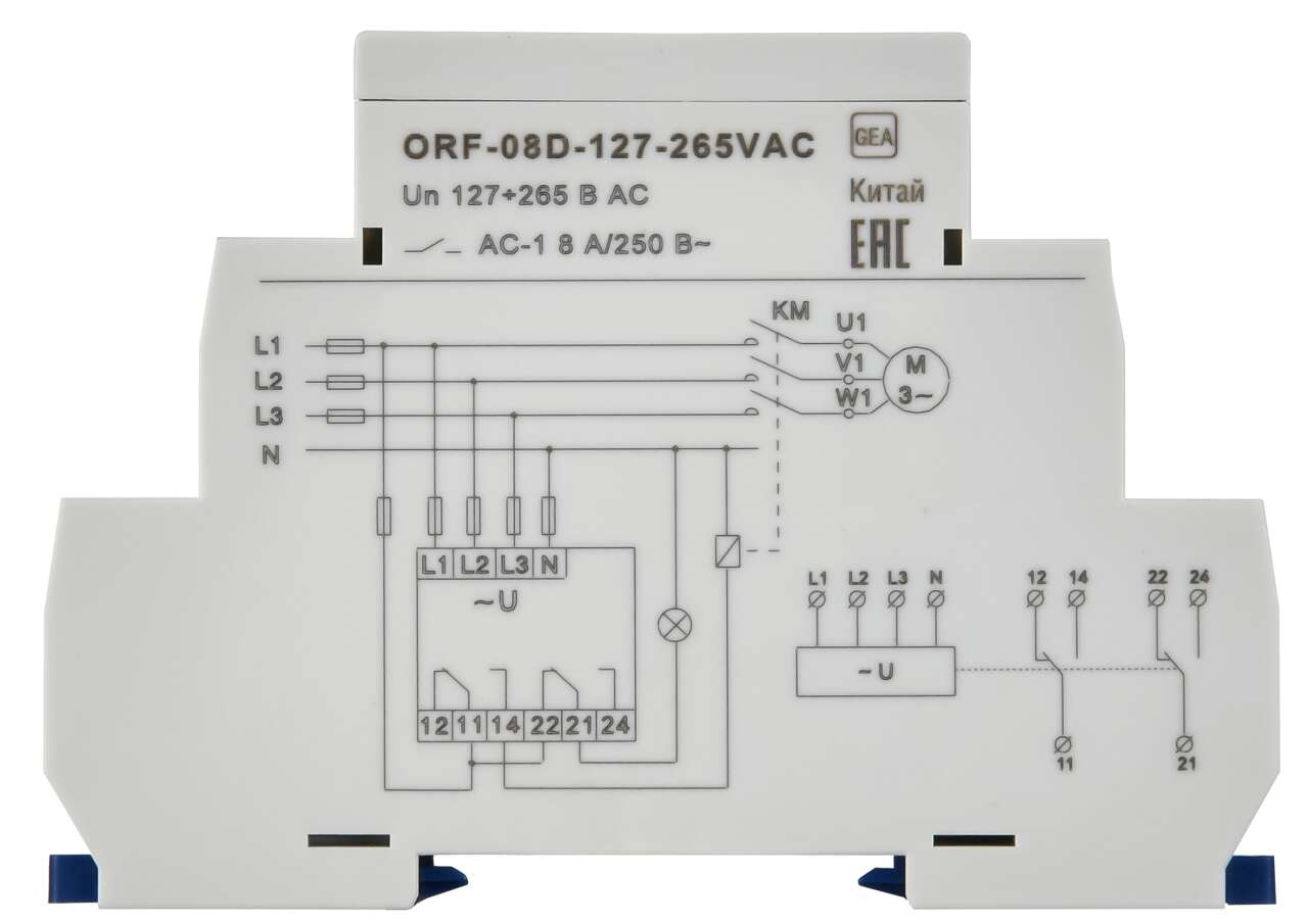ОформитьРеле контроля фаз ORF-08D 3 фазы 2 контакта 127-265В AC с контролем нейтрали ONI