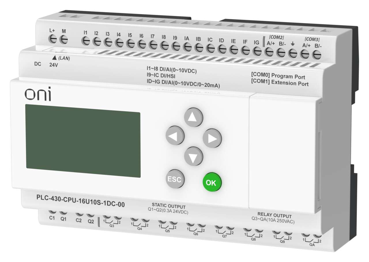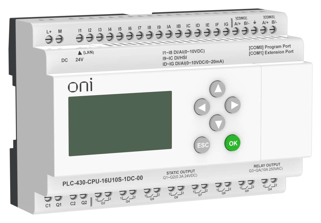 ОформитьПЛК 430 Модуль ЦПУ 4 DI 12 UI (0-10 В/DI) 8 RO 2 TO 24В DC с Ethernet портом с экраном ONI