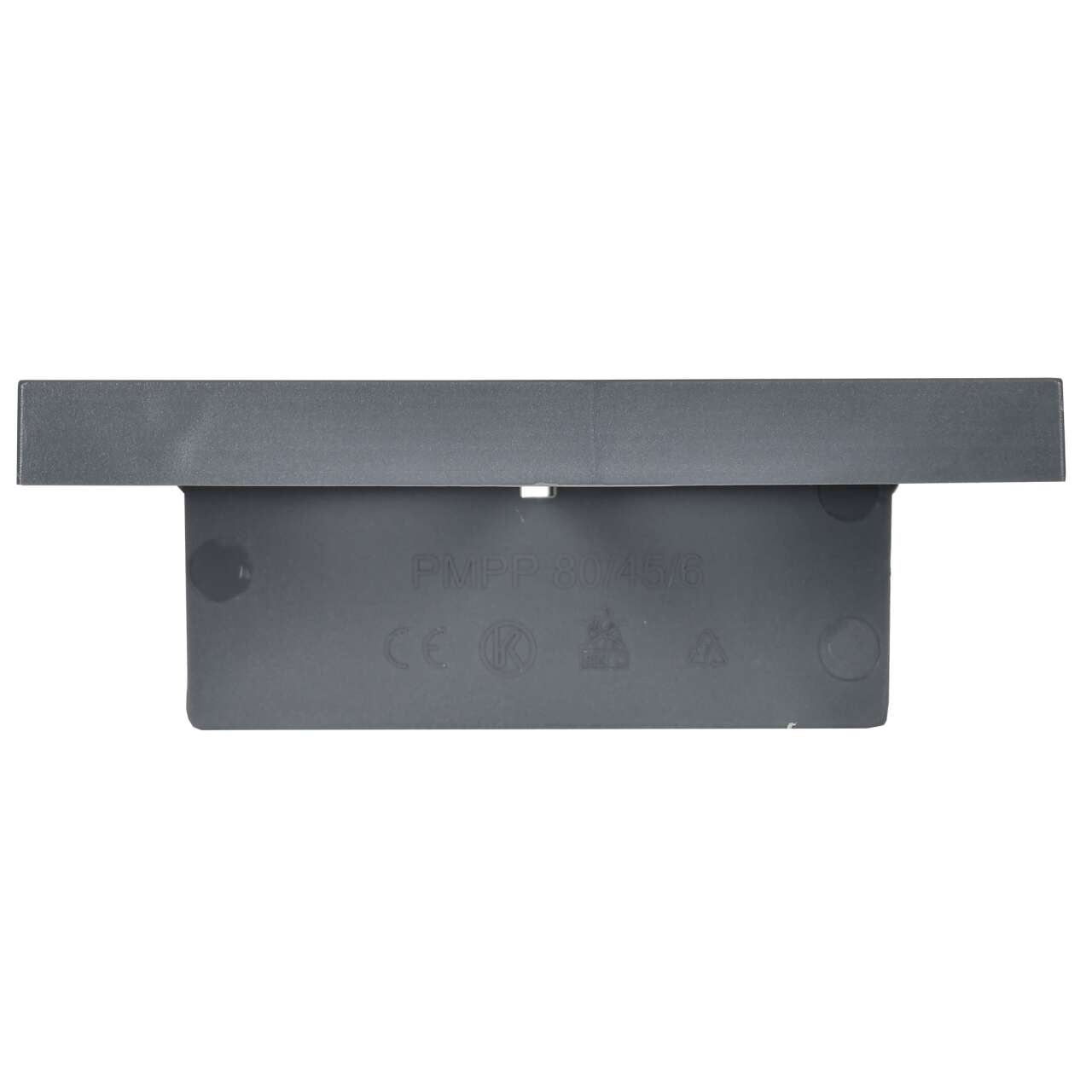 Рамка приборная на 12 модулей ONFLOOR 24. Предназначена для установки в лючок напольный ONFLOOR 24 (максимум 2 шт.) 12 модулей (6 постов 45х45 мм / 12 модулей 45х22,5) электроустановочных изделий. Комплект поставки: Рамка приборная на 12 модулей - 1 шт.; разделительная перегородка - 2 шт.; крепежные винты - 4 шт. Материал: полиамид. Цвет: тeмно-серый RAL 7012.