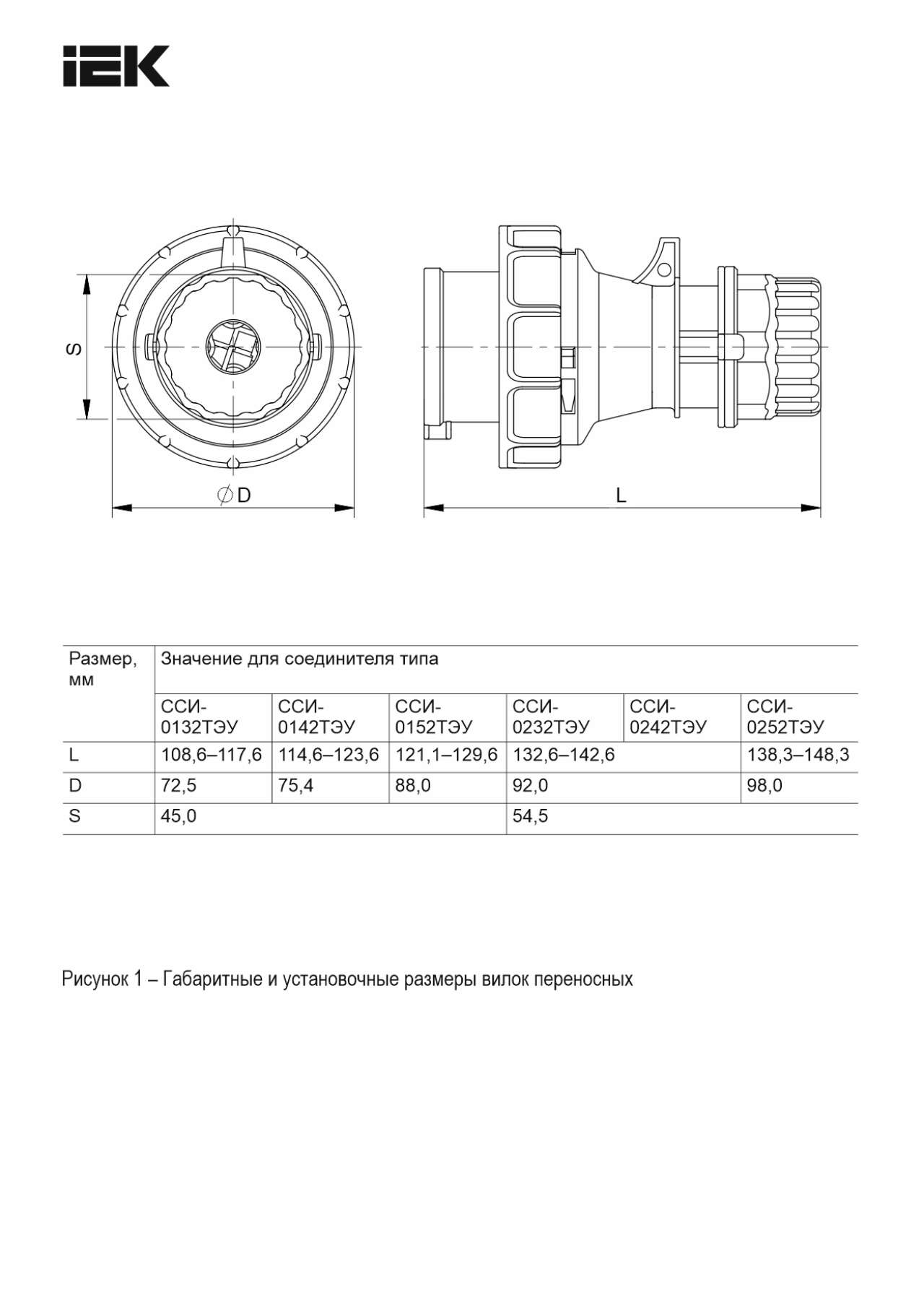 ОформитьВилка переносная ССИ-0252ТЭУ 32А-6ч 380В 3P+PE+N IP67 IEK