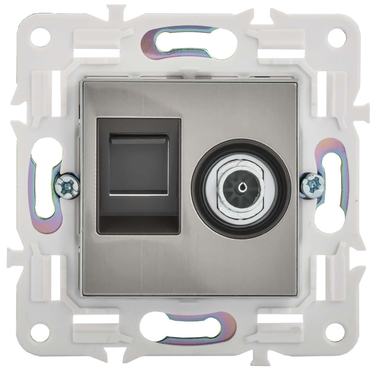 ОформитьSKANDY Розетка двойная TV+RJ45 кат.5E SK-A14N металл никель IEK