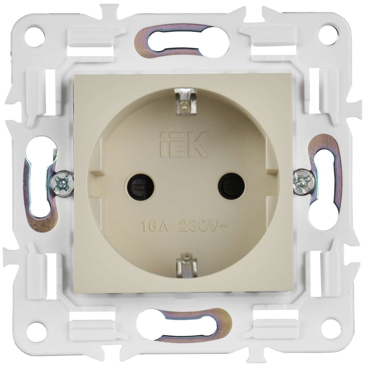 ОформитьSKANDY Розетка с заземлением с защитными шторками 16А безвинтовое крепление SK-R06B бежевый IEK