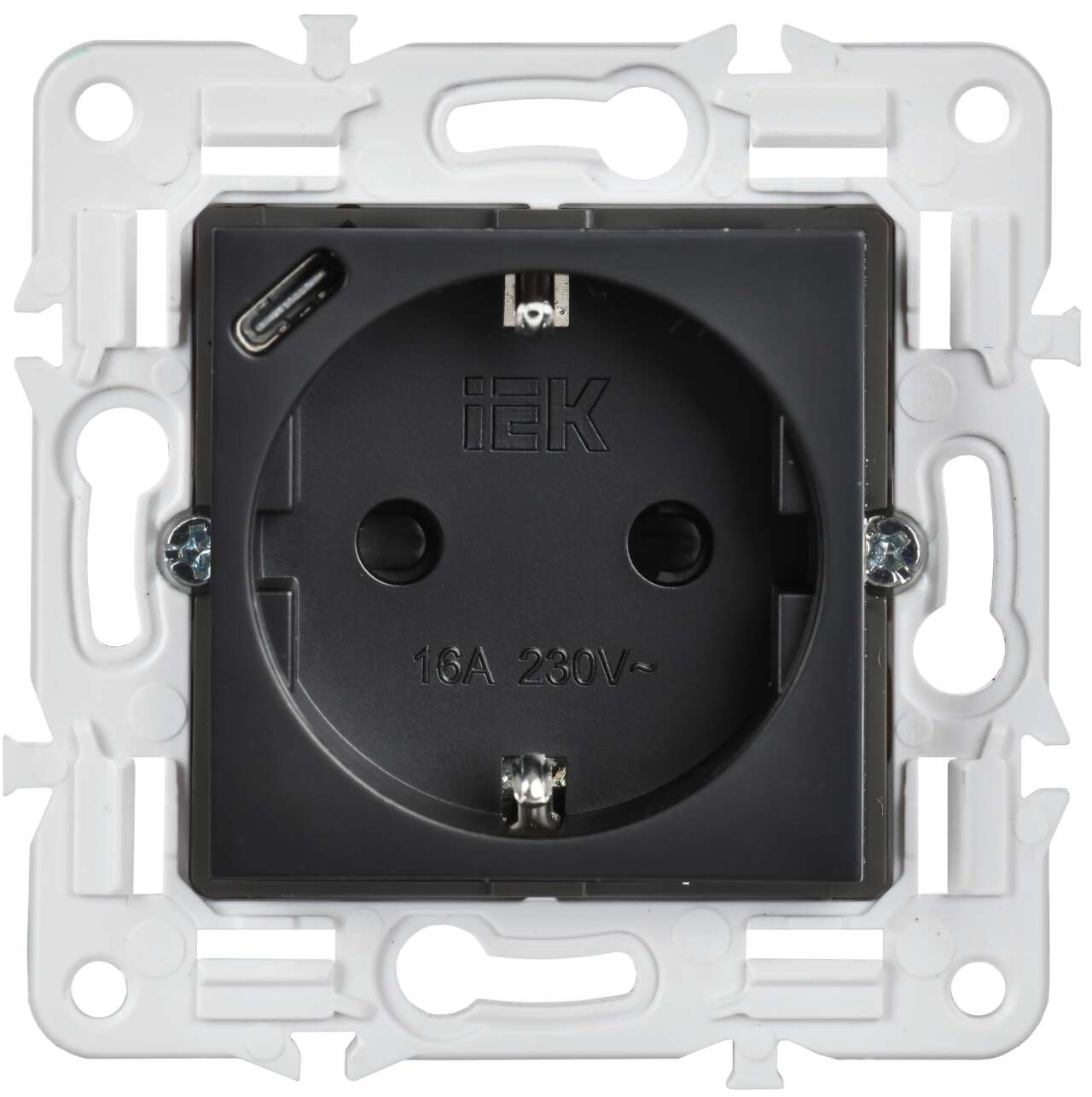 ОформитьSKANDY Розетка с заземлением с защитными шторками 16А с USB C 18Вт SK-R17Bl черный IEK