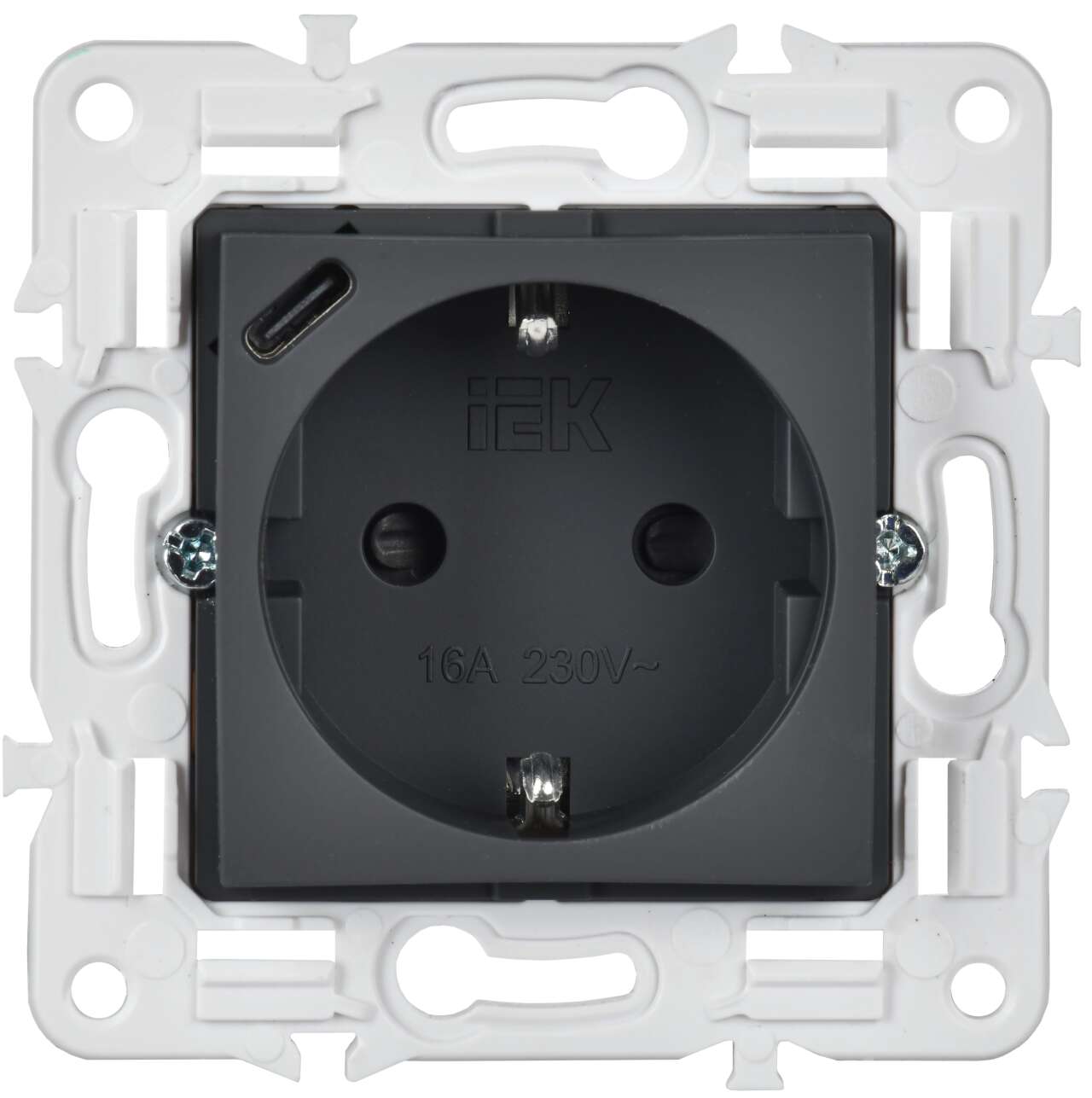ОформитьSKANDY Розетка с заземлением с защитными шторками 16А с USB C 18Вт SK-R17G графит IEK