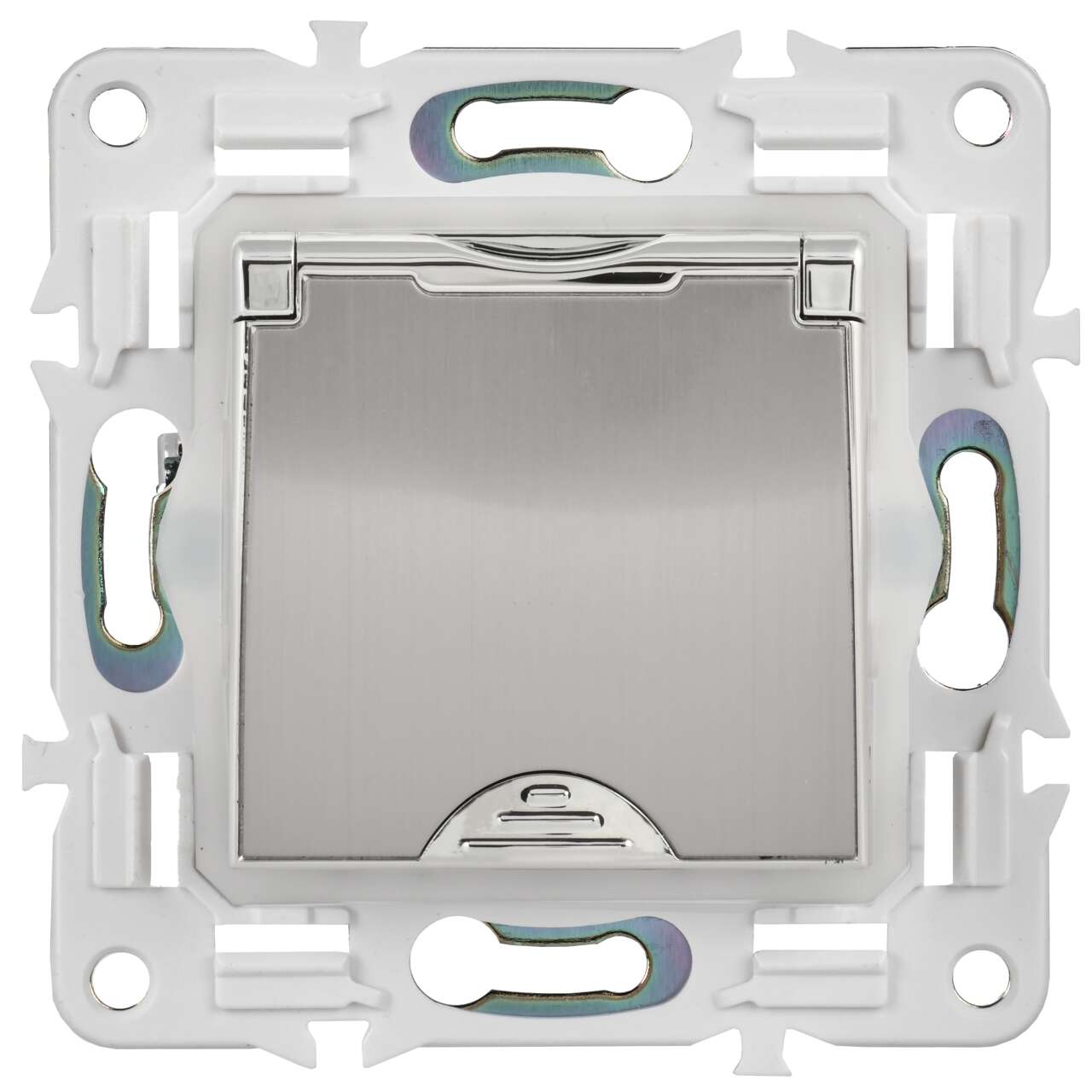 ОформитьSKANDY Розетка 1-местная с заземлением с защитными шторками и крышкой 16А IP44 SK-R11N металл никель IEK