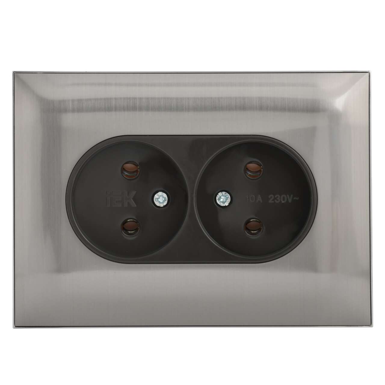 ОформитьSKANDY Розетка 2-местная без заземления без защитных шторок 10А в сборе SK-R10N металл никель IEK