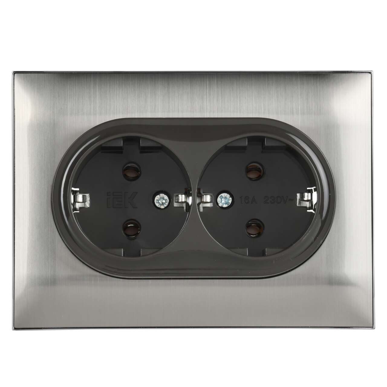 ОформитьSKANDY Розетка 2-местная с заземлением без защитных шторок 16А в сборе SK-R08N металл никель IEK