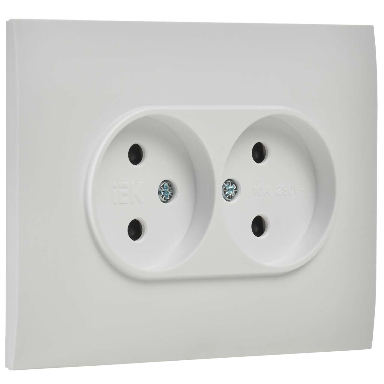 ОформитьSKANDY Розетка 2-местная без заземления с защитными шторками 10А в сборе SK-R09W арктический белый IEK