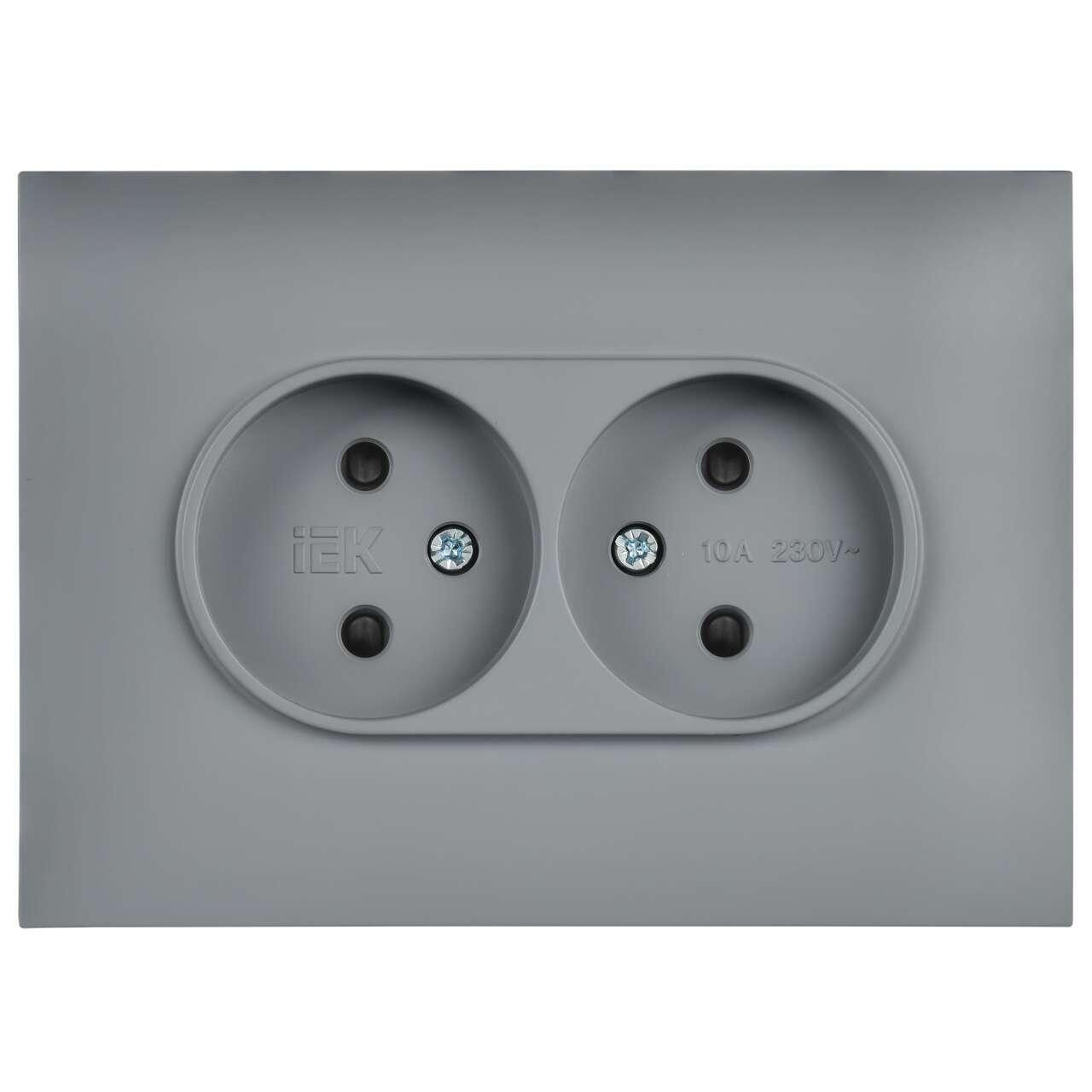 ОформитьSKANDY Розетка 2-местная без заземления с защитными шторками 10А в сборе SK-R09Gr серый IEK