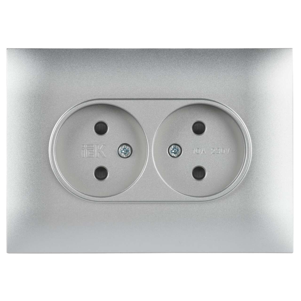 ОформитьSKANDY Розетка 2-местная без заземления с защитными шторками 10А в сборе SK-R09S серебряный IEK
