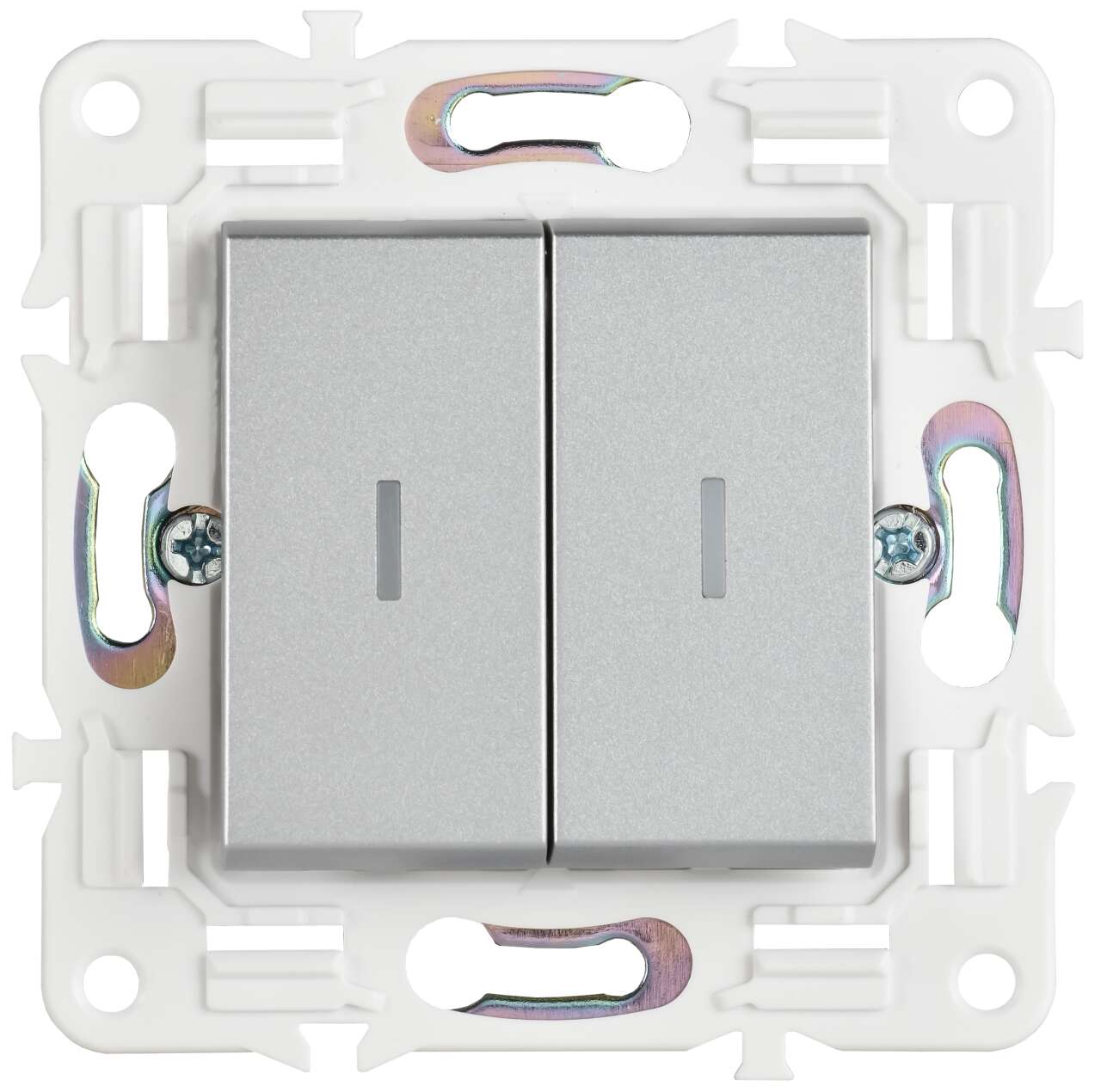ОформитьSKANDY Выключатель 2-клавишный с индикацией 10А SK-V09S серебряный IEK